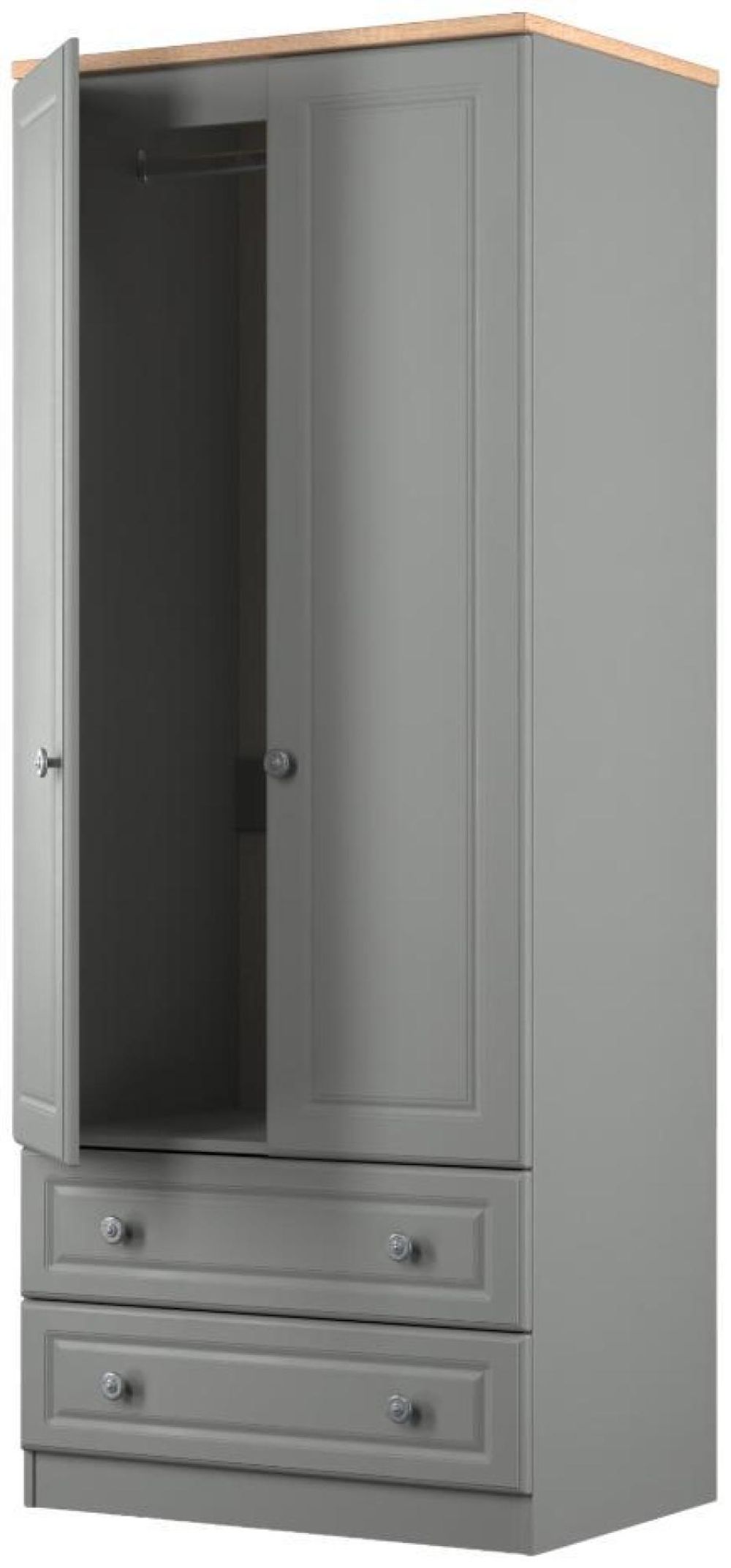 Norfolk Grey and Oak Effect 2 Door 2 Drawer Double Wardrobe