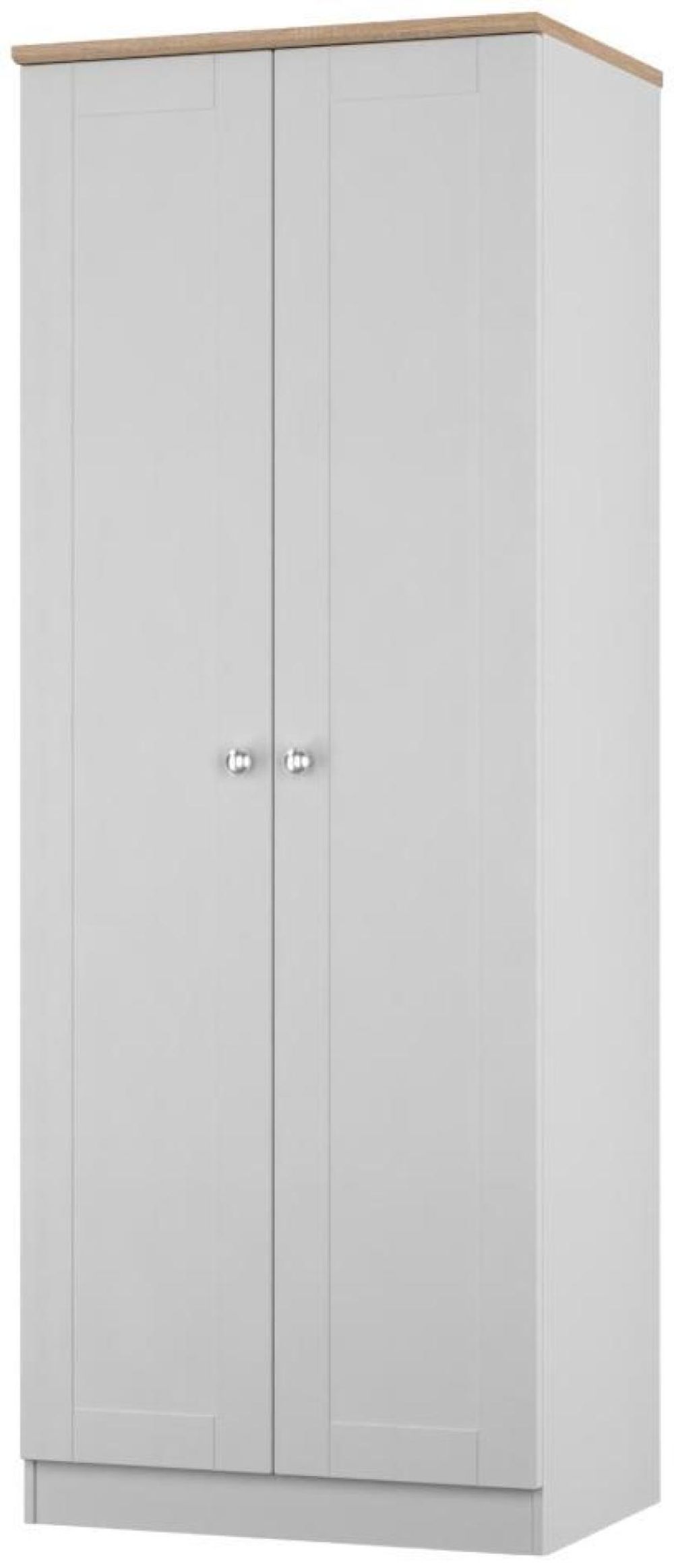 Sussex Grey and Oak Effect 2 Door Plain Tall Wardrobe
