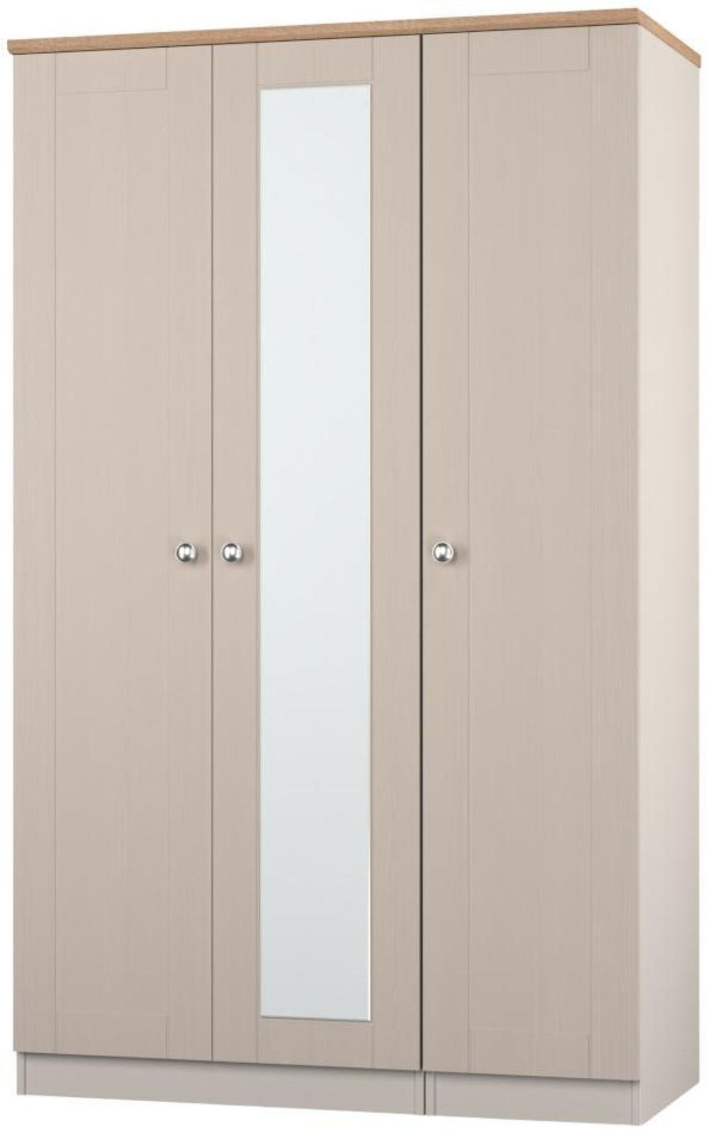 Sussex Cashmere and Oak Effect Oak 3 Door Tall Triple Wardrobe - 1 Mirror