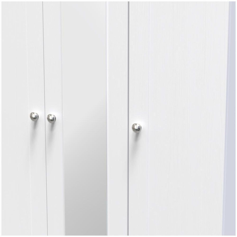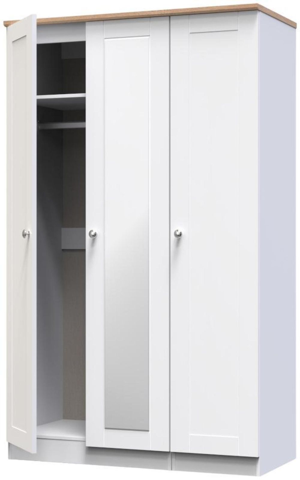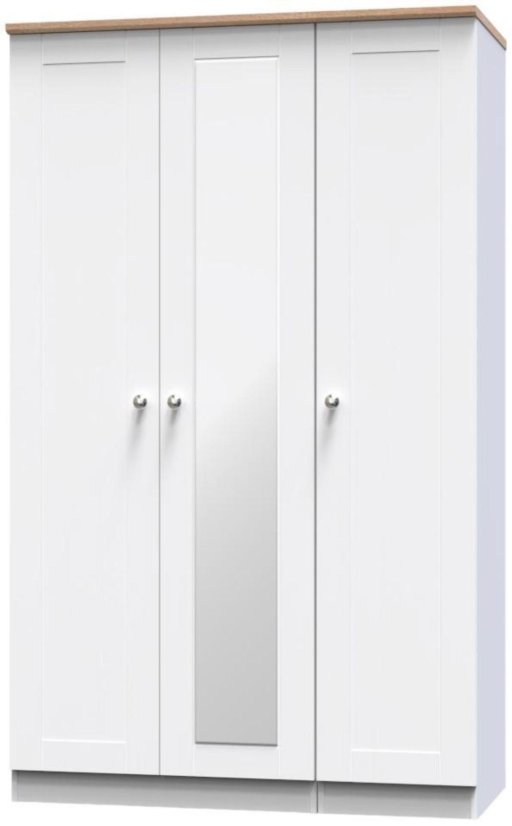 Sussex White and Oak Effect Oak 3 Door Tall Triple Wardrobe - 1 Mirror
