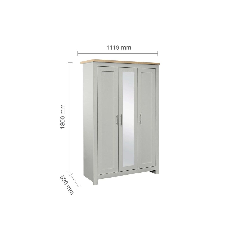 Highgate Mirror Wardrobe - 3 Door - Grey Painted