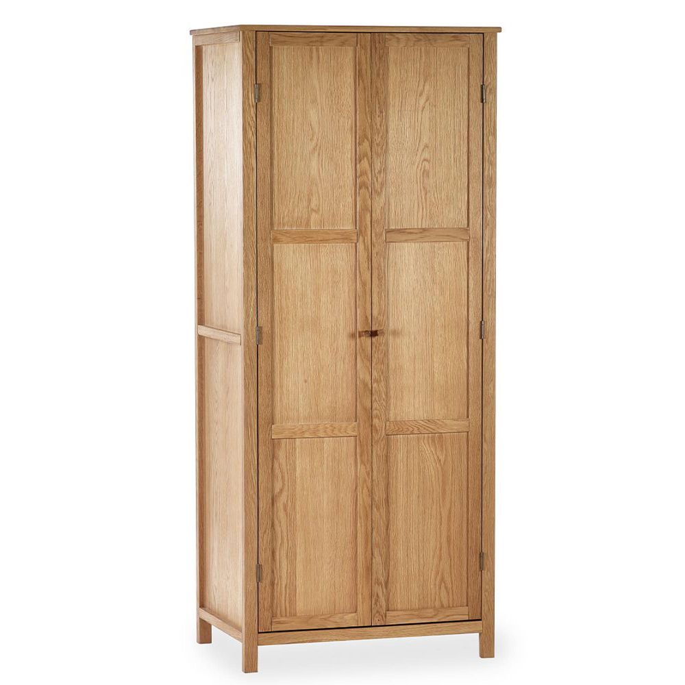 Enhance your bedroom with the Coxmoor Wardrobe in oak, a sophisticated storage solution that combines style and practicality. Crafted with clean lines and a classic oak finish, this wardrobe offers ample hanging space for clothes, along with a convenient shelf for folded items or accessories. The sleek design, complemented by elegant knob handles, allows it to fit seamlessly into any bedroom, while the natural wood grain adds warmth and character to your space. Simple assembly makes it easy to set up.
