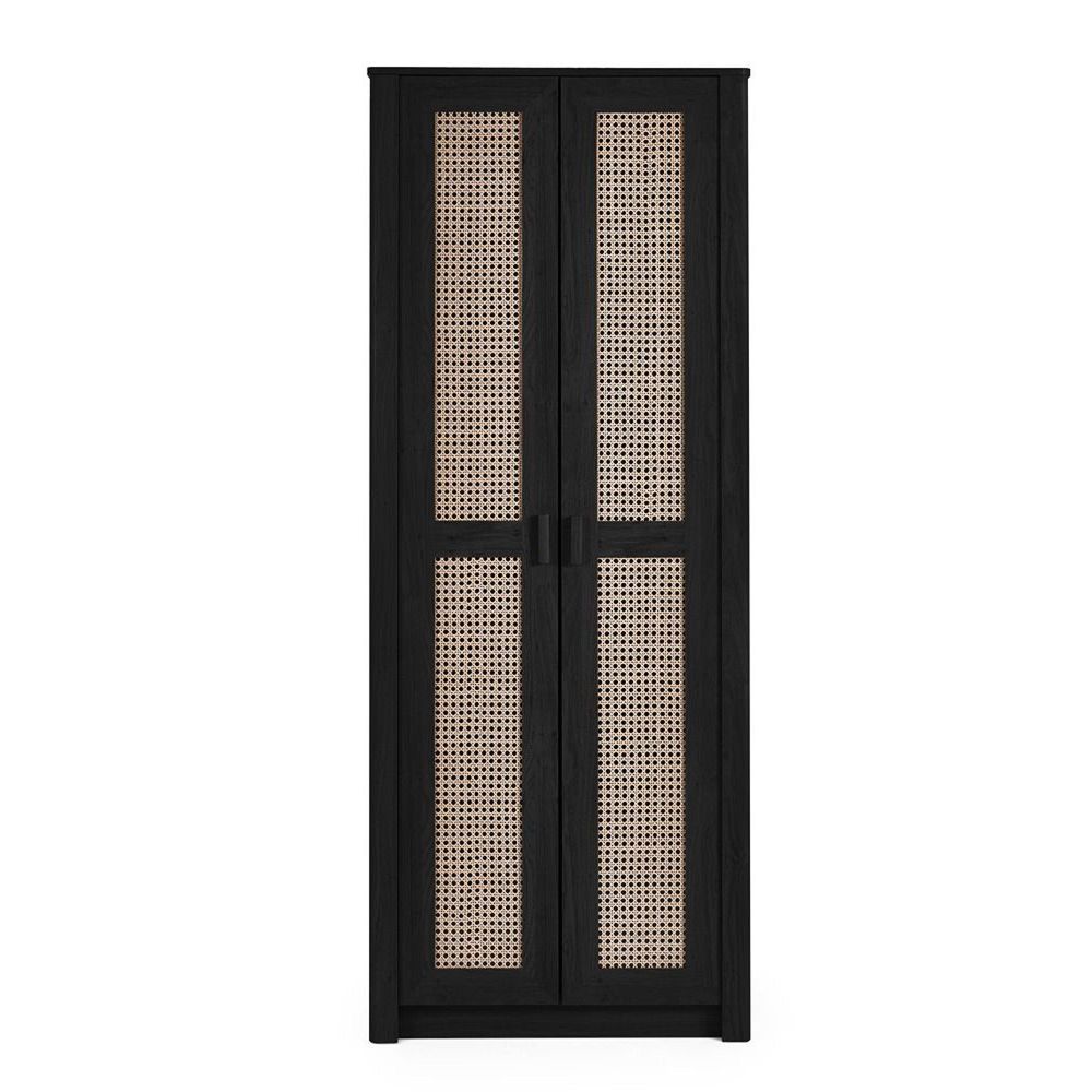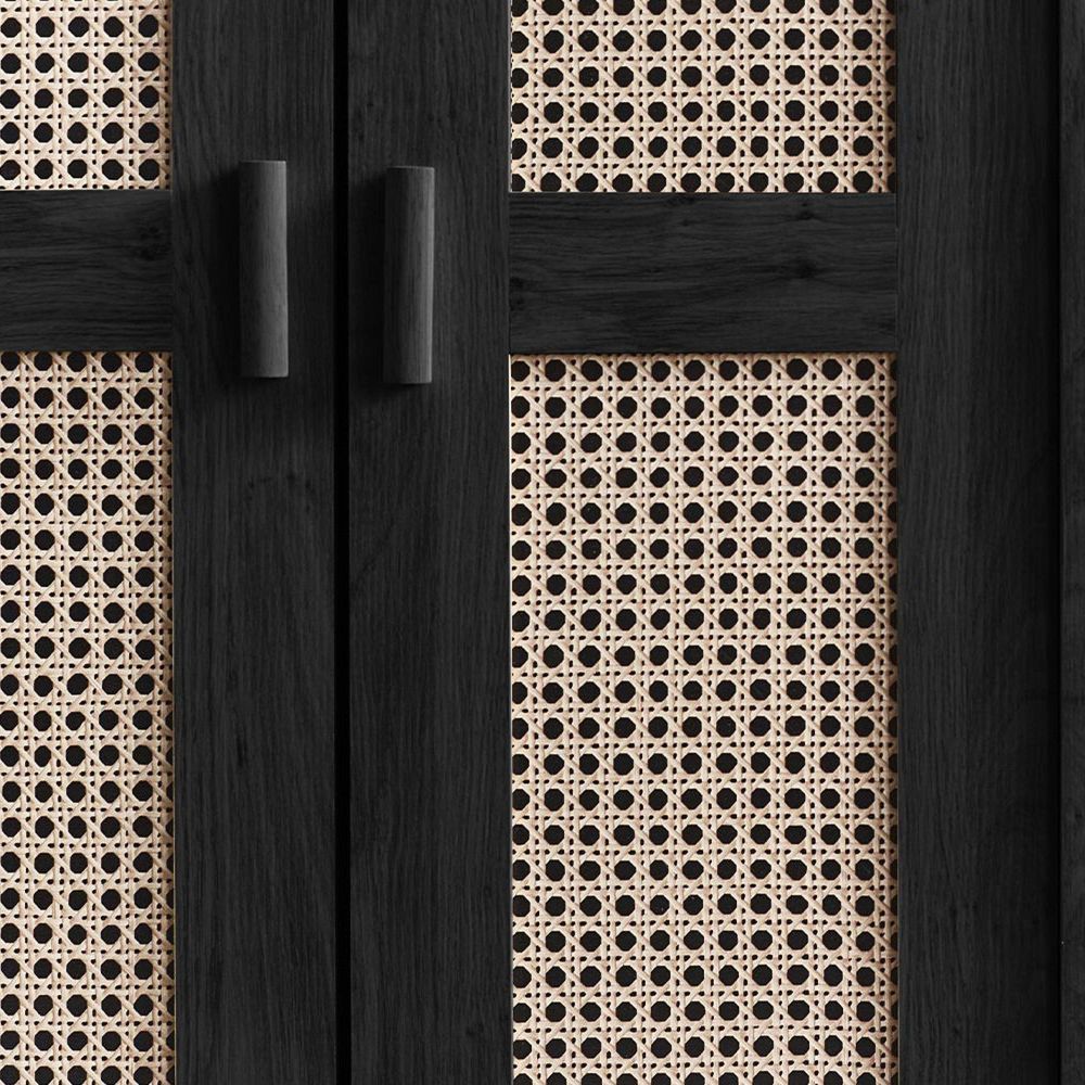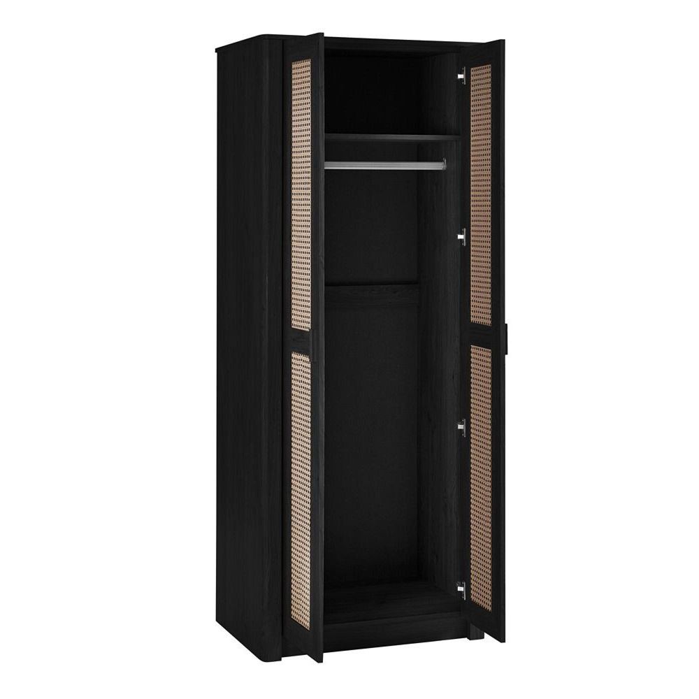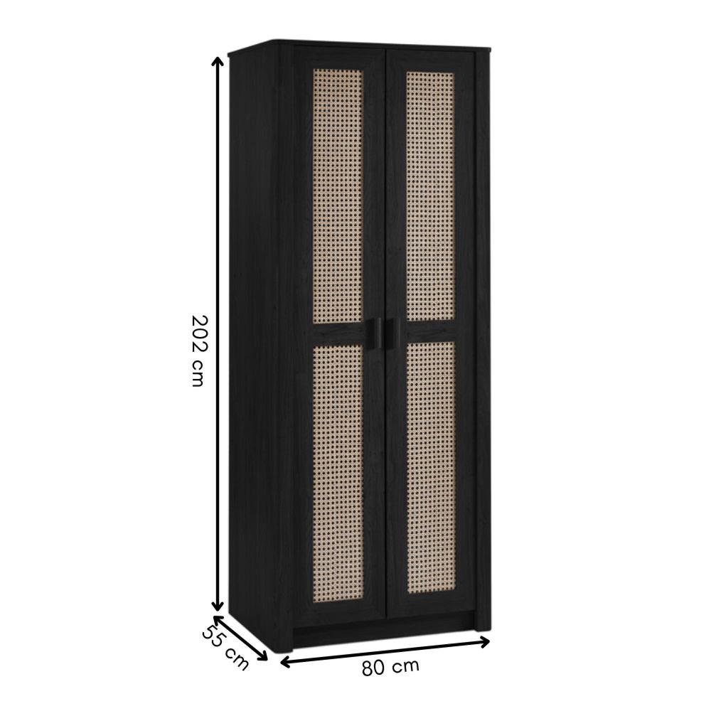Sydney Wardrobe - 2 Door - Black and Faux Rattan