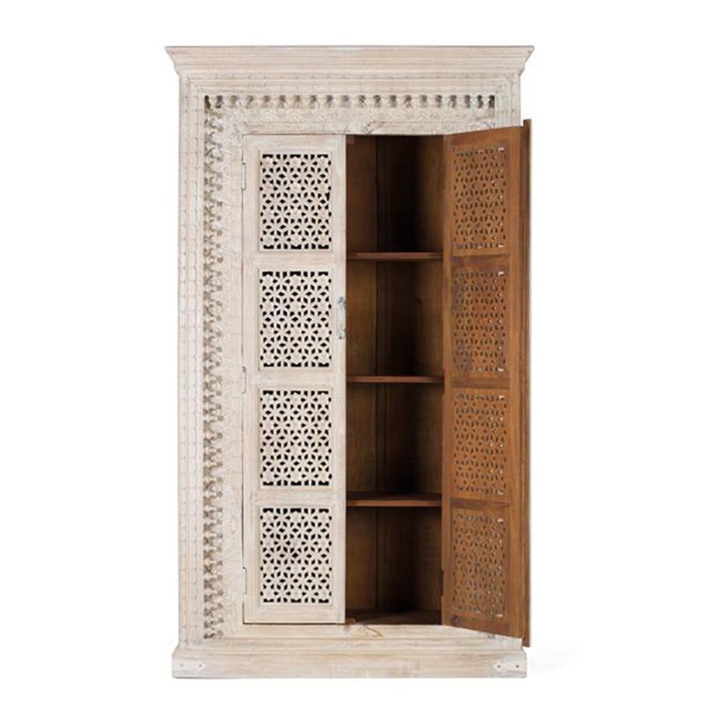 Lomax Wardrobe - White Carved Mango Wood - 2 Door