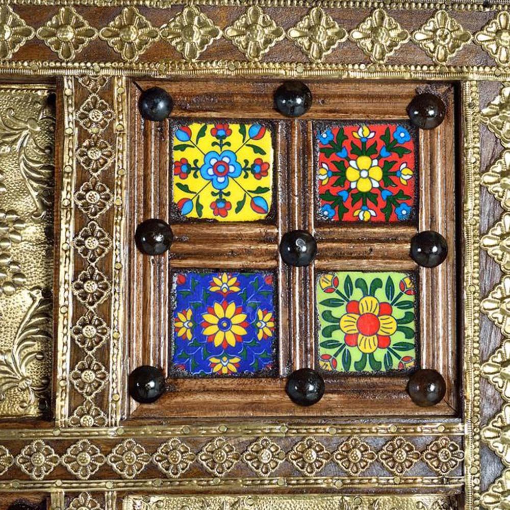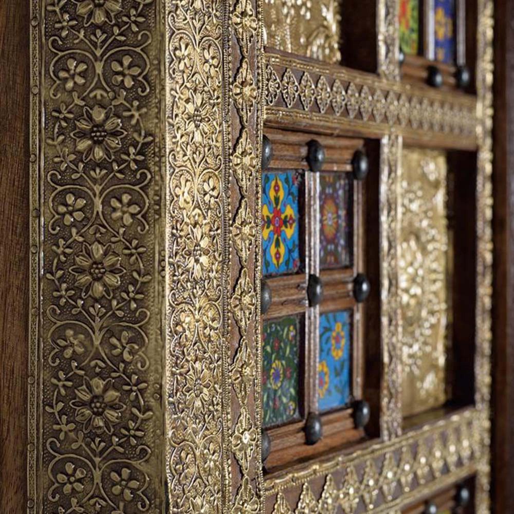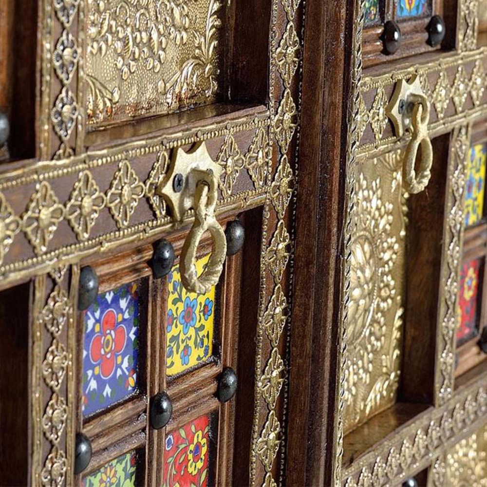 Item Code: 1277 Acacie Wood Wardrobe In Ethnic Style With Tile And Bronce Details
