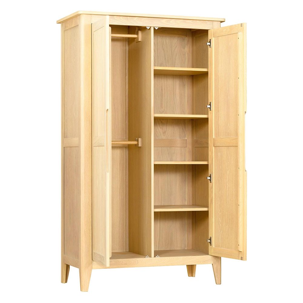 The Twyford Oak 2 Door Wardrobe offers timeless design and practical storage, crafted to bring warmth and elegance to your bedroom. Made from pale oak with naturally soft tones, it reflects the Scandinavian-inspired charm and modern rustic style that define the Twyford collection.