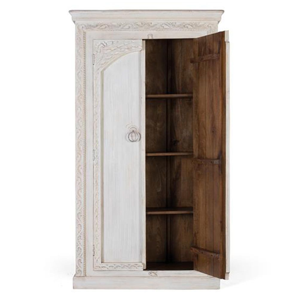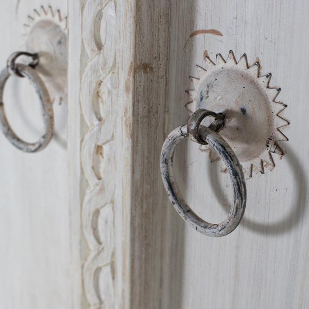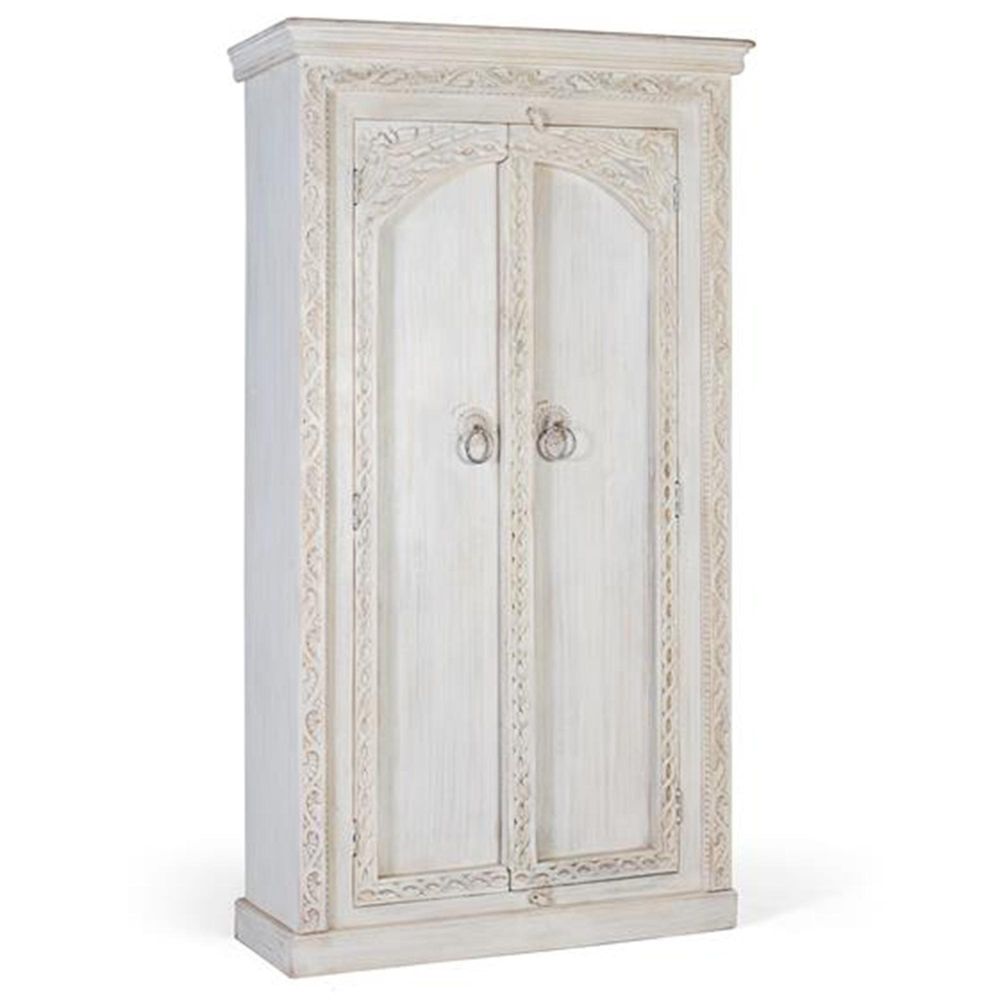 Kahoka Wardrobe - 2 Door - Distressed White Carved - Mango Wood