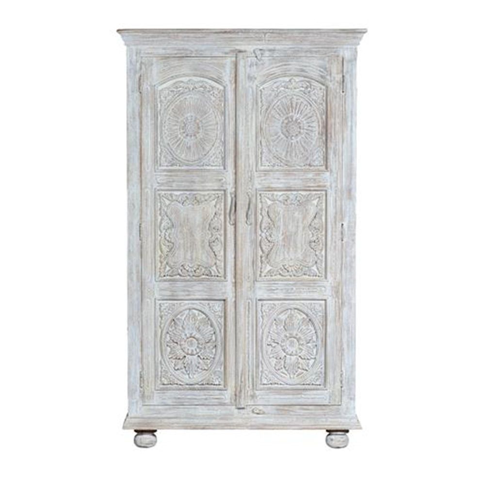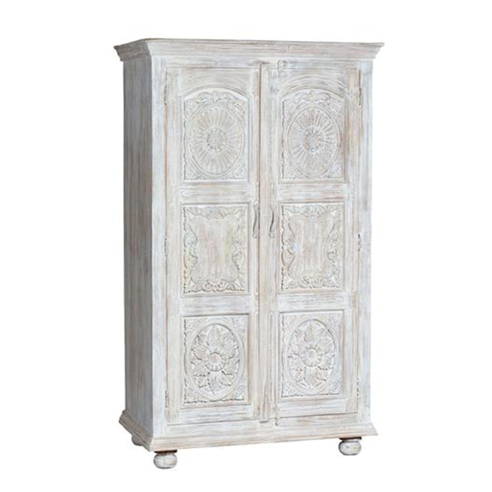Jensen Wardrobe - 2 Door - Distressed White Carved - Mango Wood