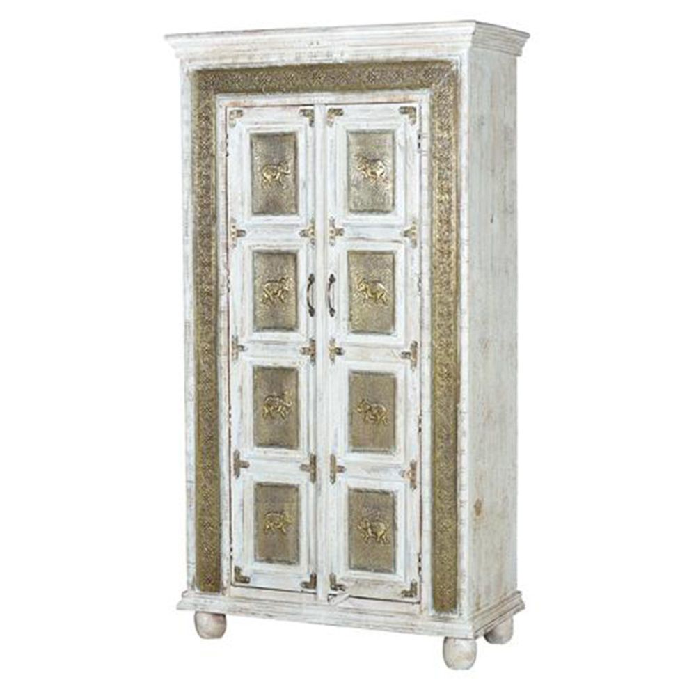 Item Code: 6483 Mango Wood Cabinet Pickled In White With Bronze Details.