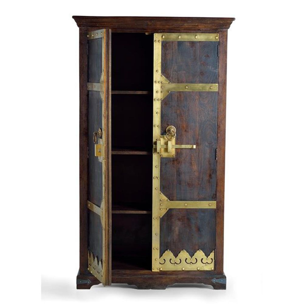 Item Code: 6071 2-Door Mango Wood Cabinet With Bronze Door Details. 3 Interior Shelves.