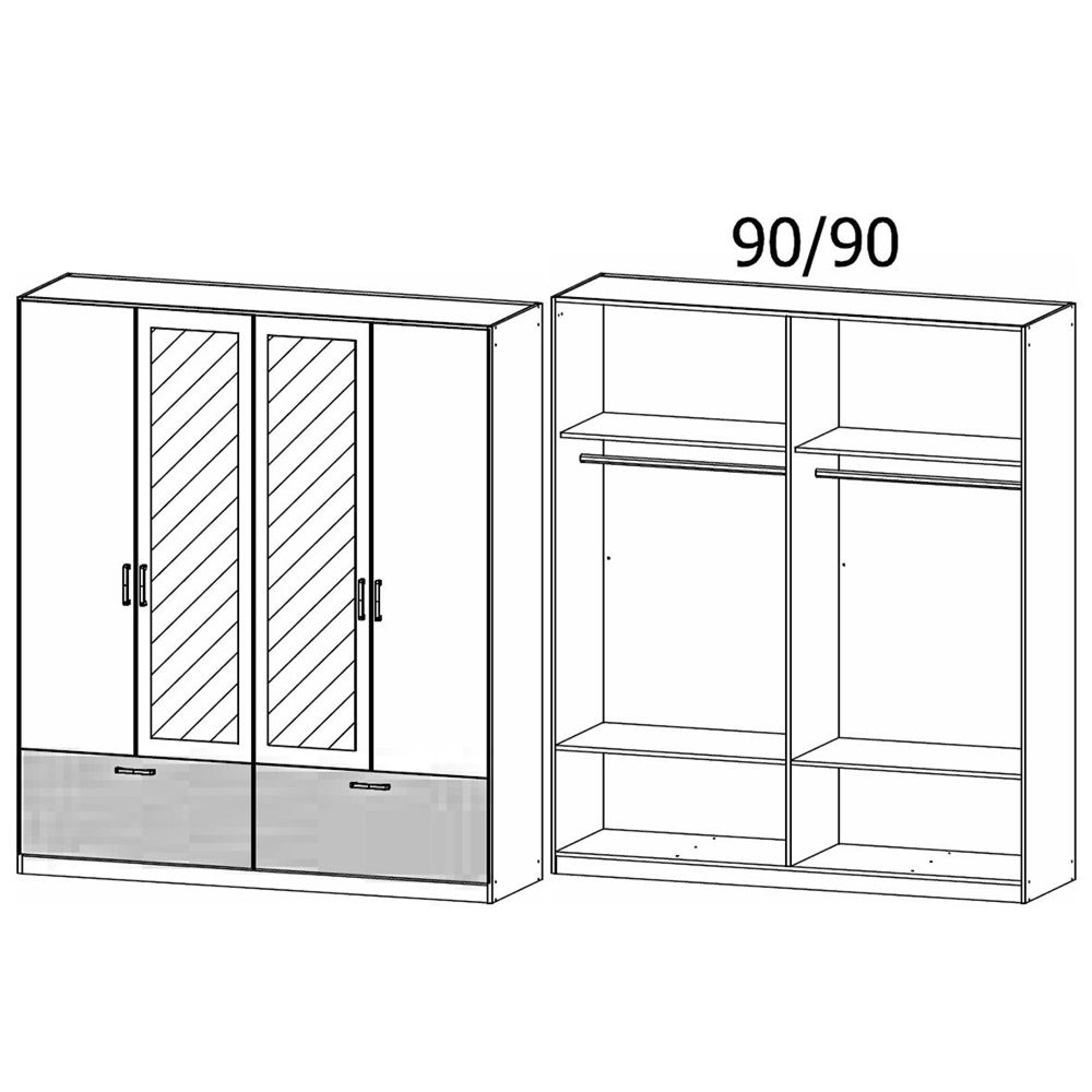 Rauch Bari 181cm 4 Door Combi Wardrobe with Drawers - Alpine White and Artisan Oak