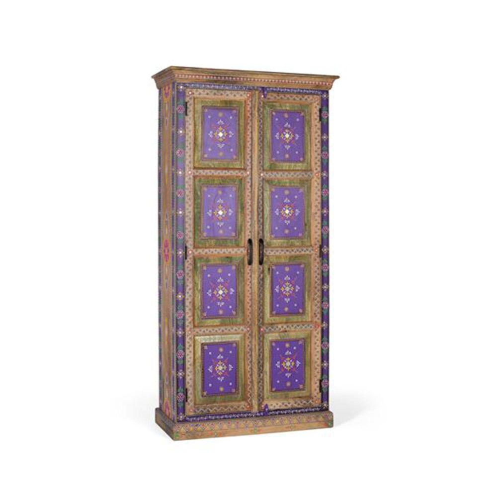 Item Code: 1772 This Imposing Wardrobe Embodies Artisanal Excellence With Its Design Made Of Mango Wood And Hand-Painted. Every Aspect Of This Piece Reflects Meticulous Attention To Detail And A Commitment To Quality.Mango Wood, Prized For Its Distinctive Grain And Durability, Provides A Solid And Elegant Base For This Cabinet.With Its Ample Storage Space, This Cabinet Offers Functionality For Storing Clothes, Accessories And Also The Possibility Of Organizing Miscellaneous Items Such As Books, Documents Or Even Tableware, Making It A Versatile Piece For Any Space In Your Home.