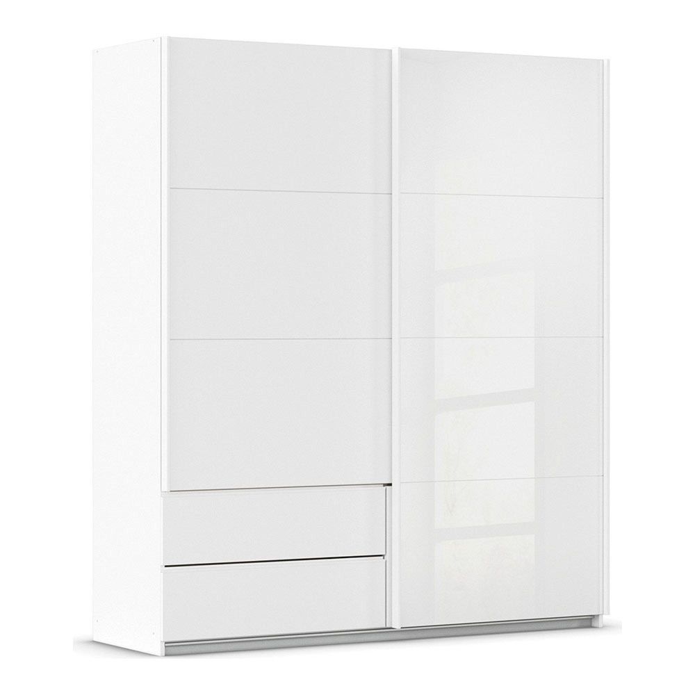 Rauch Elara 181cm 2 Door Combi Sliding Wardrobe - Alpine White and White Glass