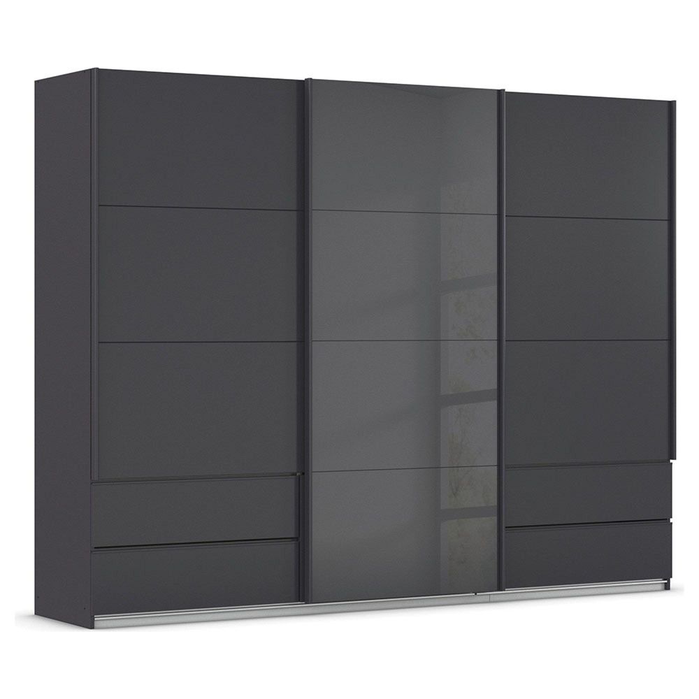 Rauch Elara 271cm 3 Door Combi Sliding Wardrobe - Metallic Dark Grey and Basalt Glass