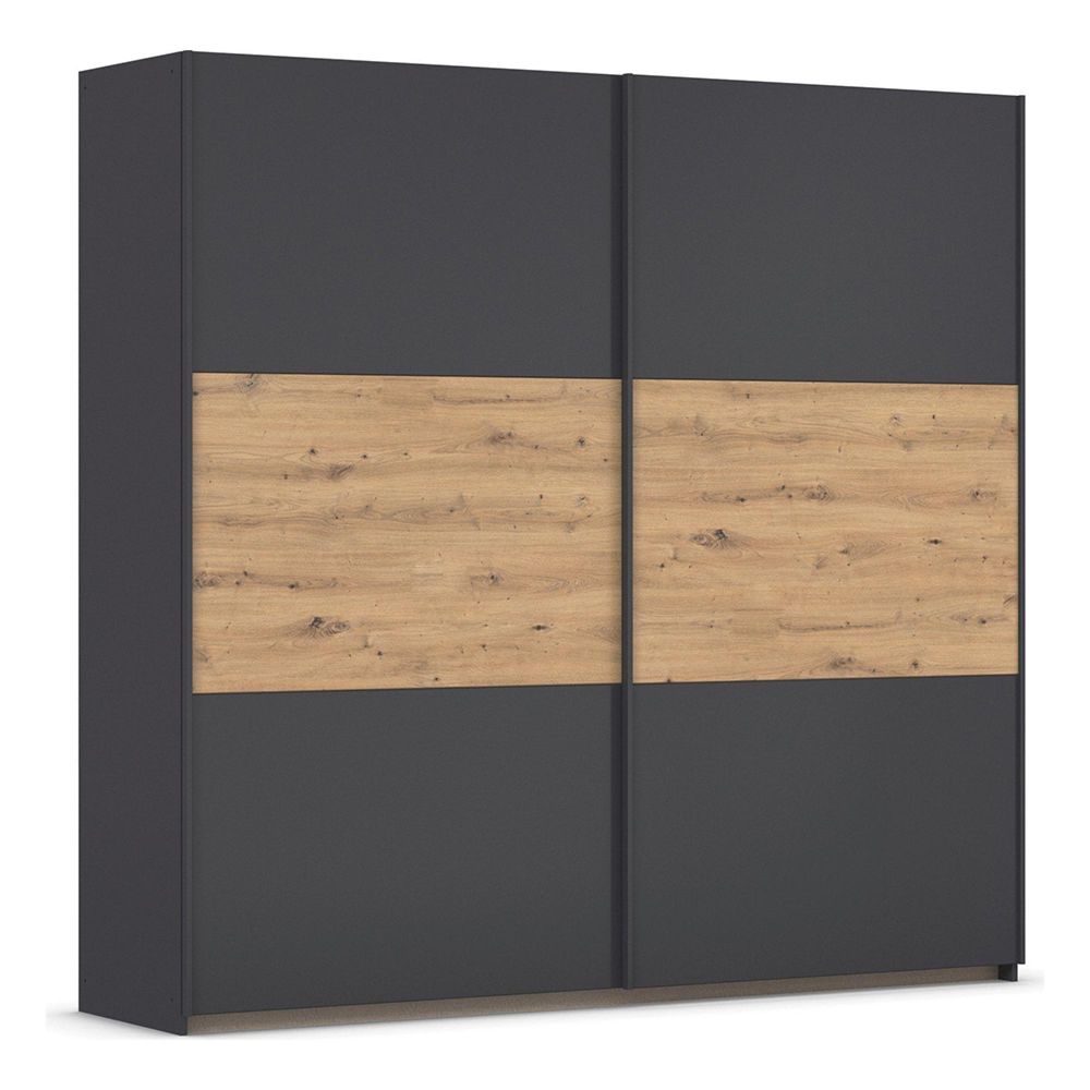 Rauch Neo 218cm 2 Door Sliding Wardrobe - Metallic Dark Grey and Artisan Oak