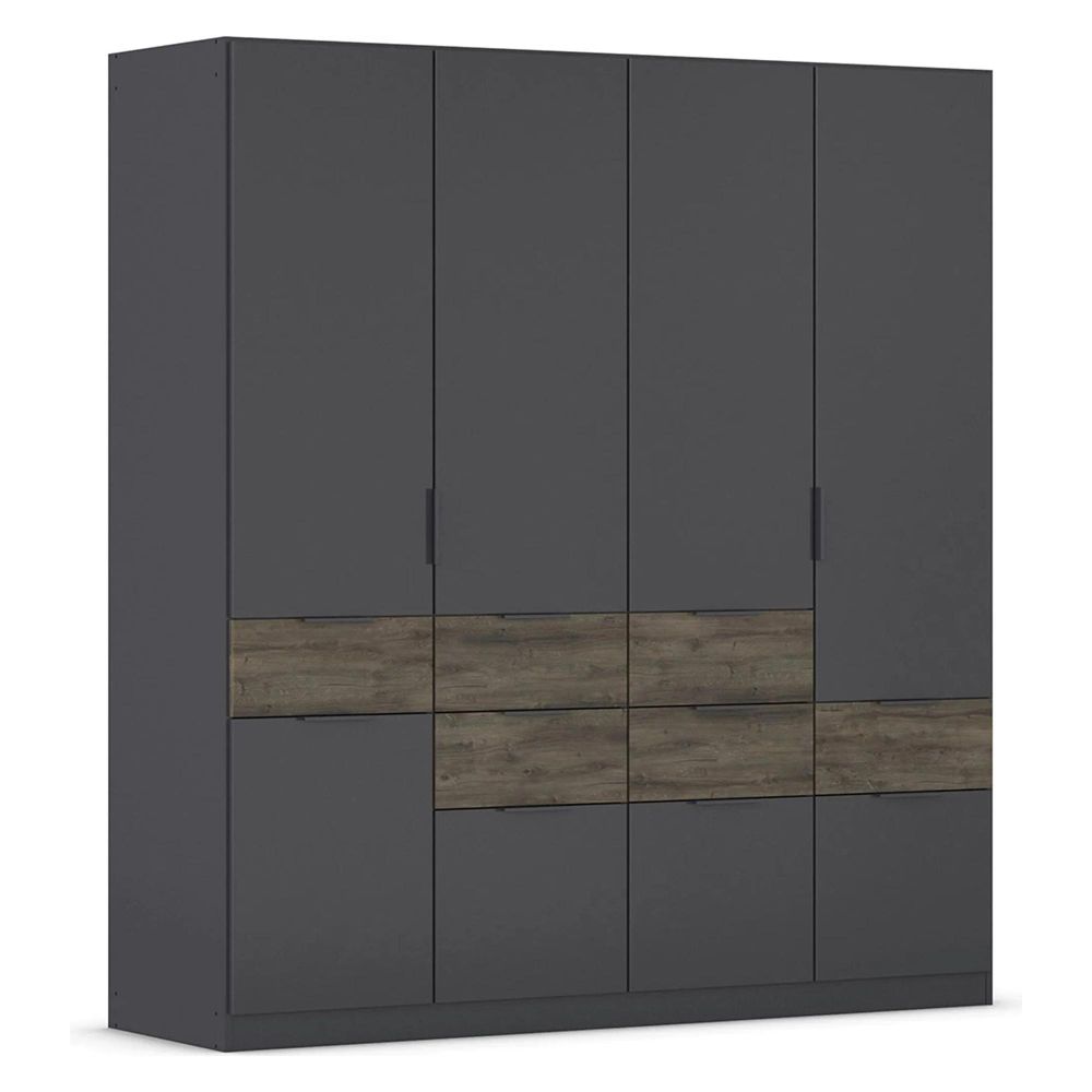 Rauch Mats 181cm 5 Door Wardrobe with Drawer - Metallic Dark Grey and Atlantic Dark Oak