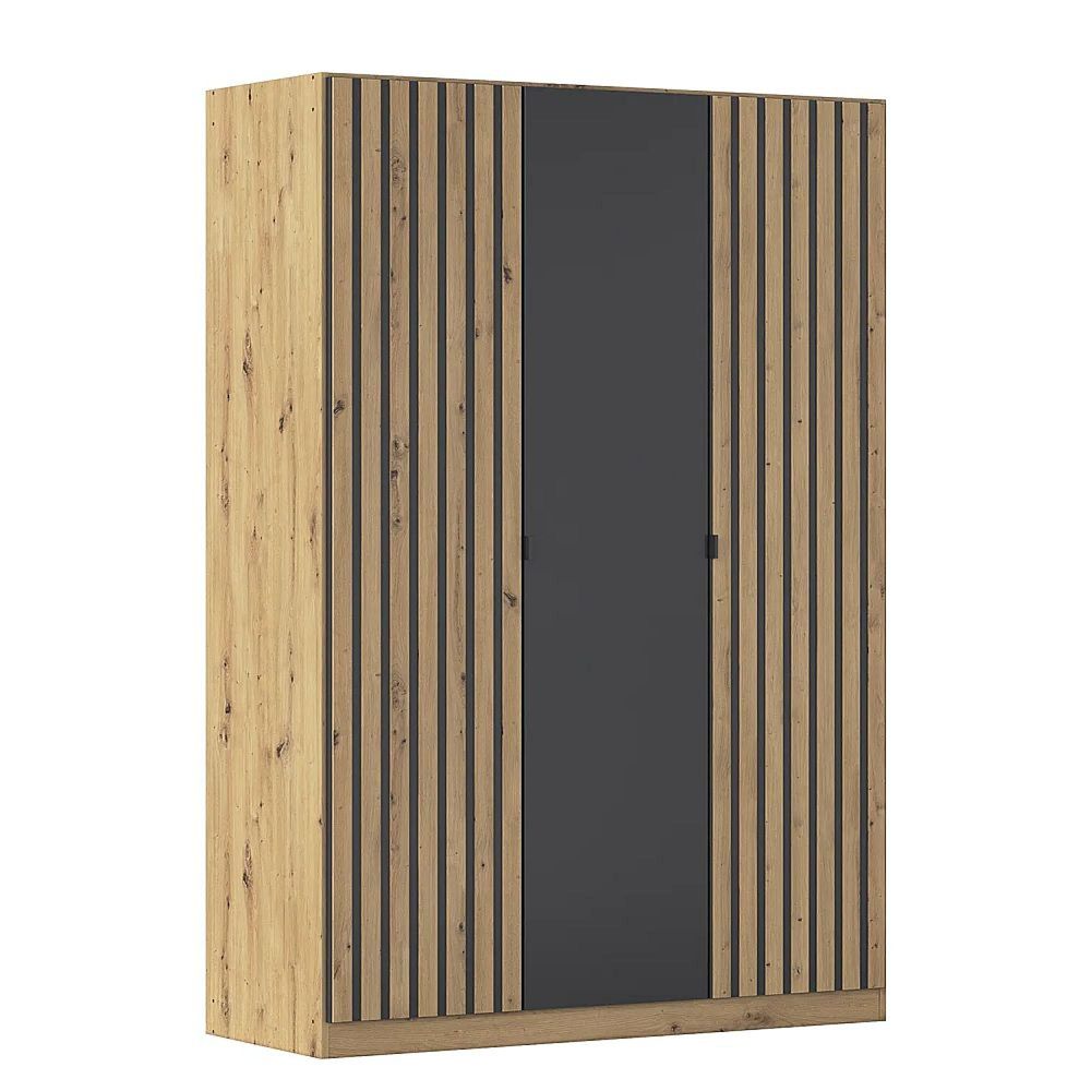 Rauch Genua 136cm 3 Door Wardrobe Type A - Artisan Oak and Metallic Dark Grey