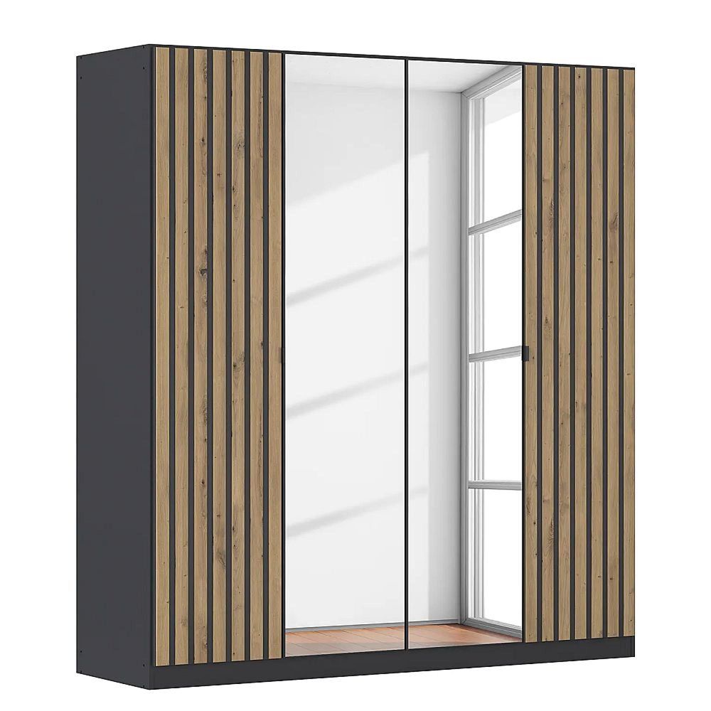 Rauch Genua 181cm 4 Door Wardrobe with Mirror - Metallic Dark Grey and Artisan Oak