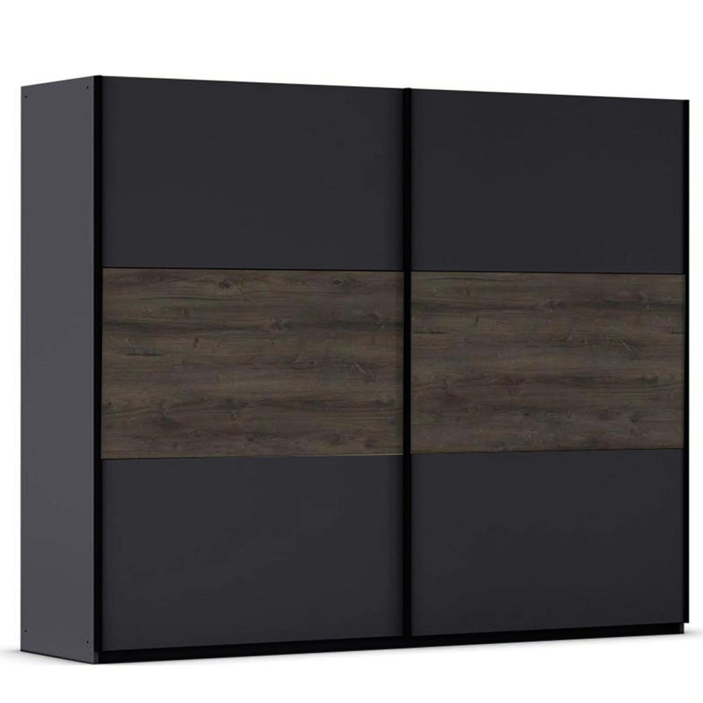 Rauch Marbella 261cm 2 Door Sliding Wardrobe - Metallic Dark Grey and Atlantic Dark Oak