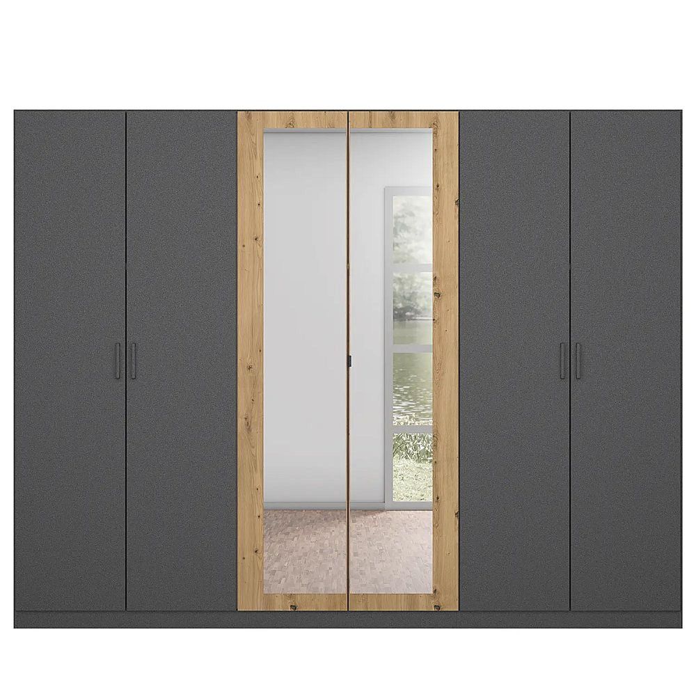 Rauch Miro 271cm 6 Door Wardrobe with Mirror - Metallic Dark Grey and Artisan Oak