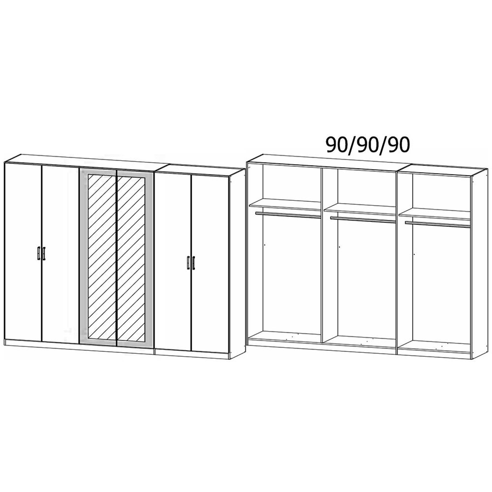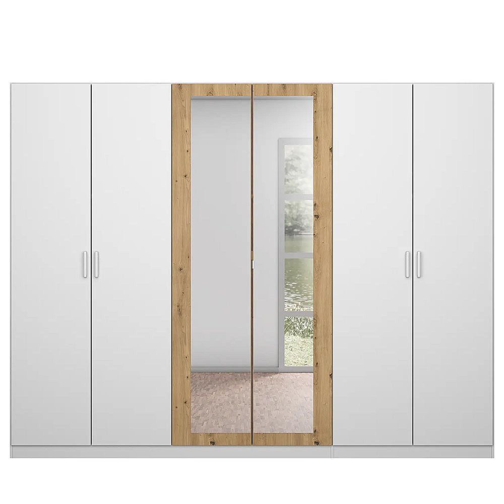 Rauch Miro 271cm 6 Door Wardrobe with Mirror - Alpine White and Artisan Oak