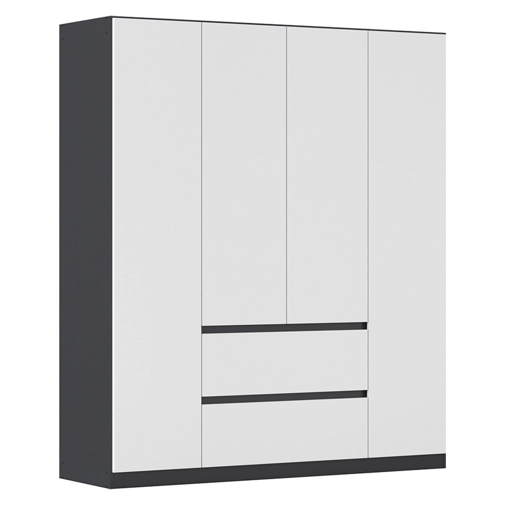 Rauch Mainz Plus 181cm 4 Door Wardrobe with Drawer - Metallic Dark Grey and White High Gloss