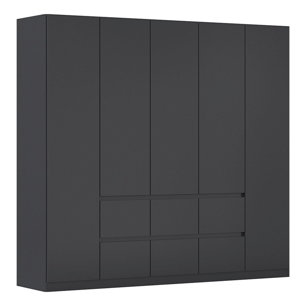 Rauch Mainz Plus 226cm 5 Door Wardrobe with Drawer - Metallic Dark Grey and Grey High Gloss