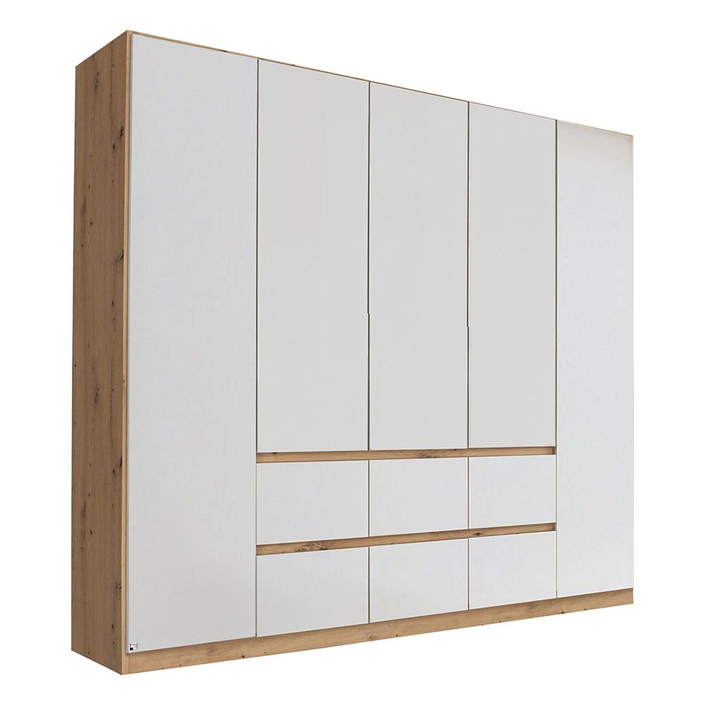 Rauch Mainz Plus 226cm 5 Door Wardrobe with Drawer - Sonoma Oak and White High Gloss