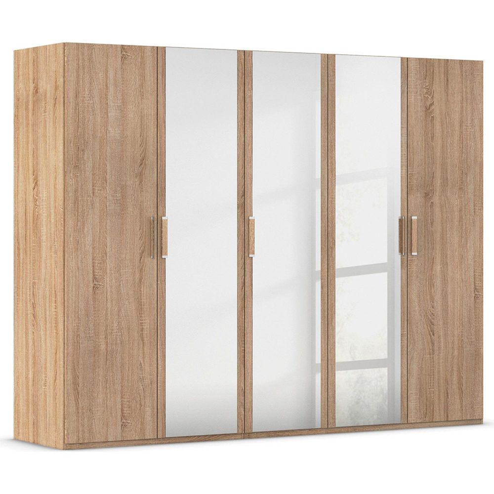 Rauch Evelyn 251cm 5 Door Wardrobe with Mirror - H 197cm - Sonoma Oak