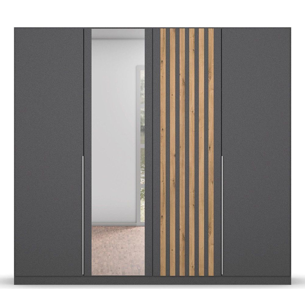 Rauch Lamella 226cm 4 Door Wardrobe with Mirror - Metallic Dark Grey and Artisan Oak