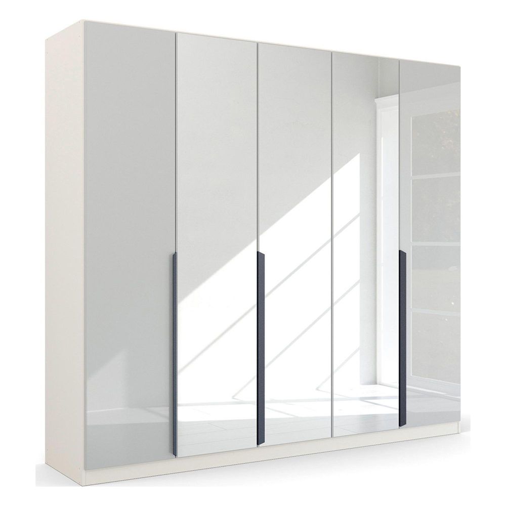 Rauch Quadra Spin 226cm 5 Door Wardrobe with Mirror - Alpine White and Crystal White Glass