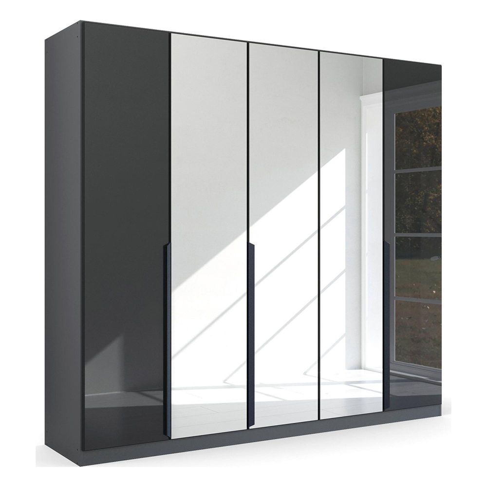 Rauch Quadra Spin 226cm 5 Door Wardrobe with Mirror - Metallic Dark Grey and Basalt Glass