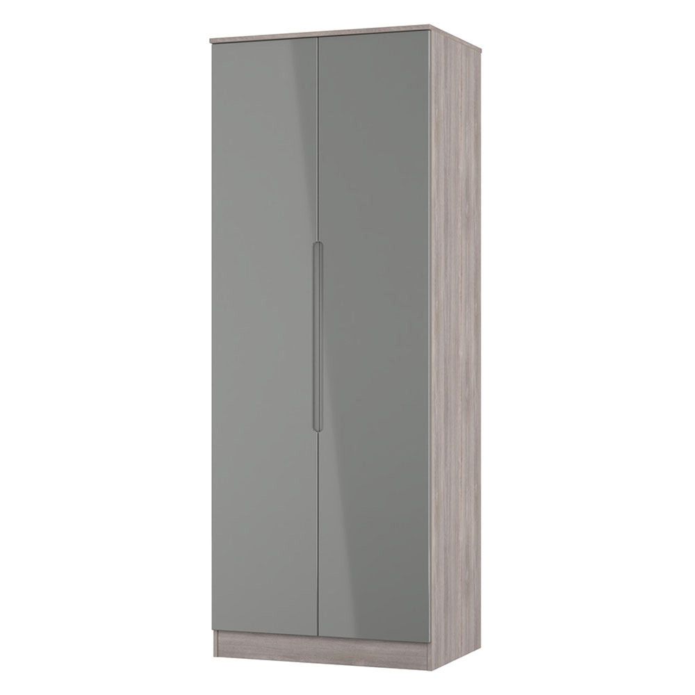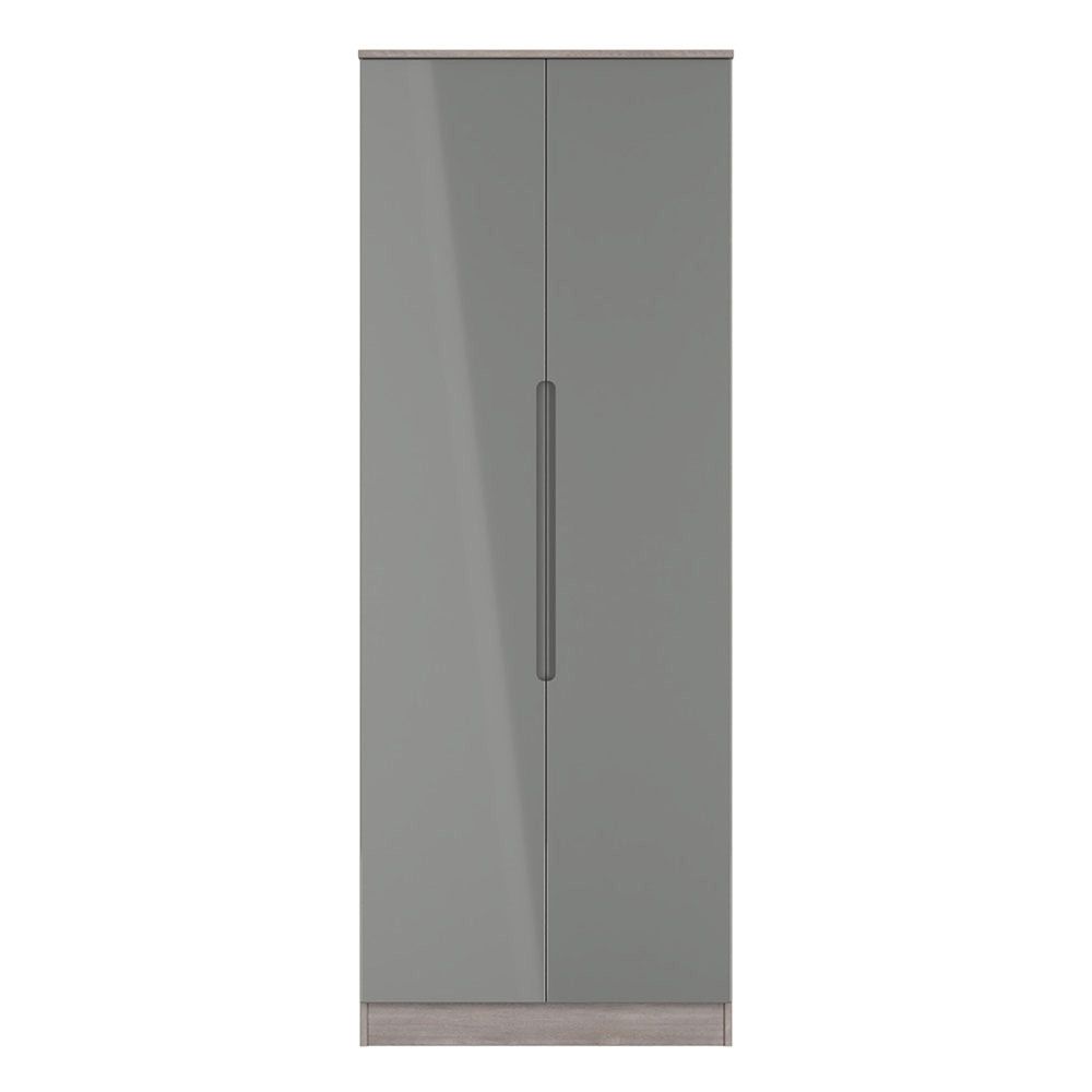 Milan Grey Gloss and Grey Oak 2 Door Plain Tall Wardrobe