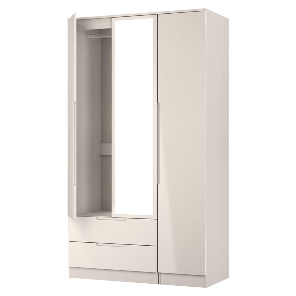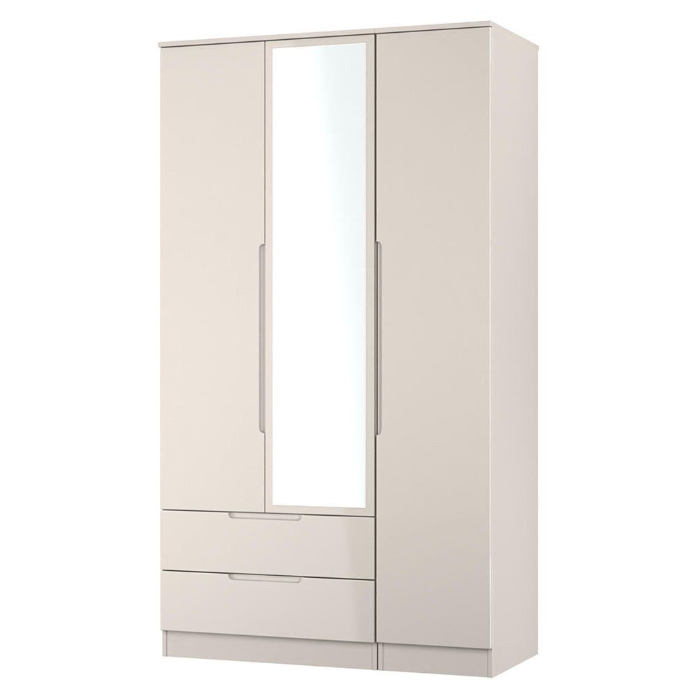 Milan Cashmere Gloss 3 Door Tall Combi Wardrobe - 1 Mirror and LHF 2 Drawers