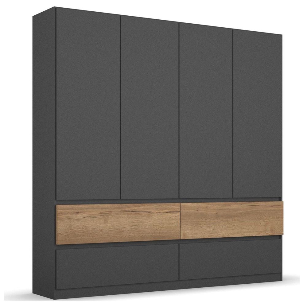 Rauch Winnipeg 181cm 4 Door Wardrobe with Lighting - Metallic Dark Grey and Halifax Oak