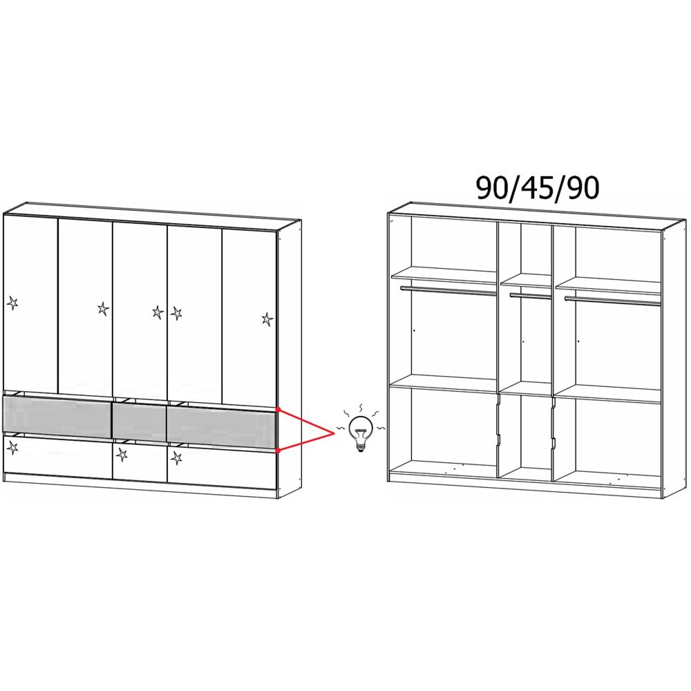 Rauch Winnipeg 226cm 5 Door Wardrobe with Lighting - Metallic Dark Grey High Gloss and Halifax Oak