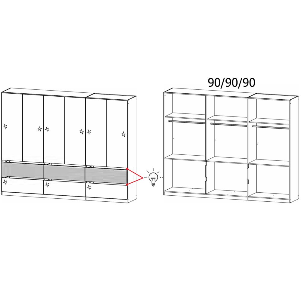 Rauch Winnipeg 271cm 6 Door Wardrobe with Lighting - Metallic Dark Grey High Gloss and Halifax Oak