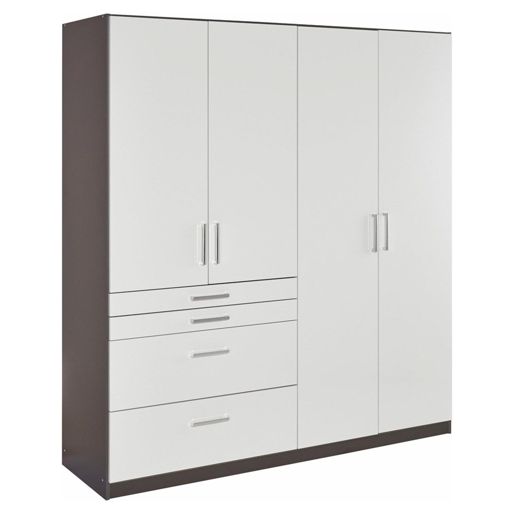 Rauch Homburg 181cm 4 Door Wardrobe with Drawer - Metallic Dark Grey and High Gloss White