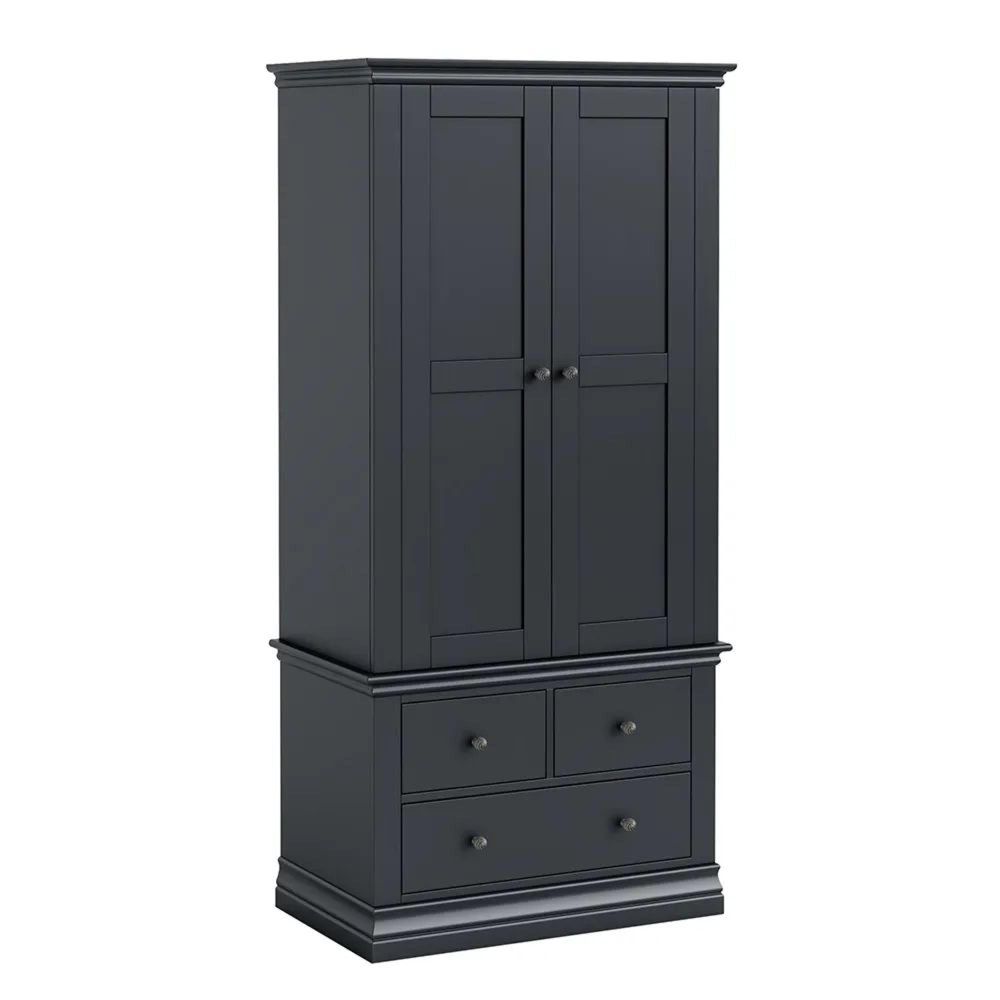 The Bordeaux Charcoal 2 Door 3 Drawer Double Wardrobe is a perfect blend of elegance, functionality, and quality craftsmanship. Crafted from solid wood and finished by hand in a rich charcoal tone, this wardrobe offers both durability and a classic look that complements any bedroom.