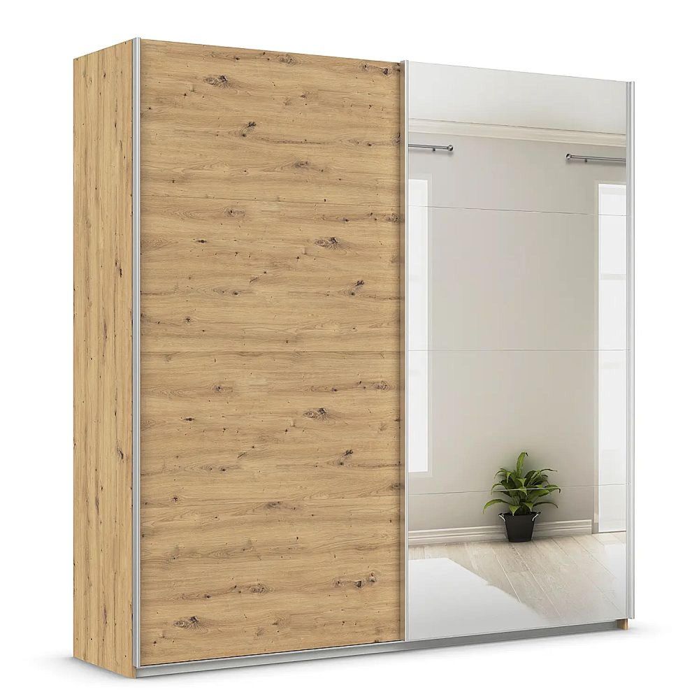 Rauch Quadra 226cm 2 Door Sliding Wardrobe with Mirror and Extras - Artisan Oak