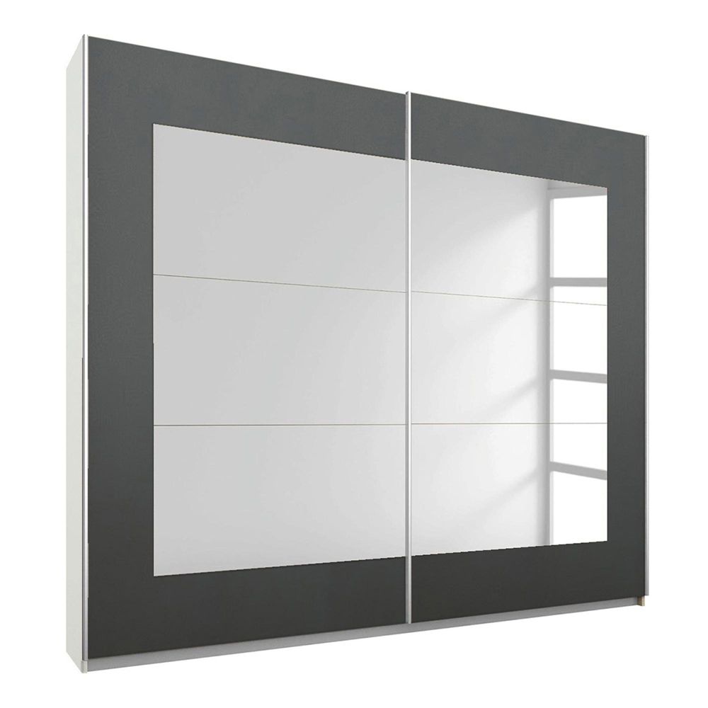 Rauch Alegro 226cm 2 Door Sliding Wardrobe with Mirror - Alpine White and Metallic Dark Grey
