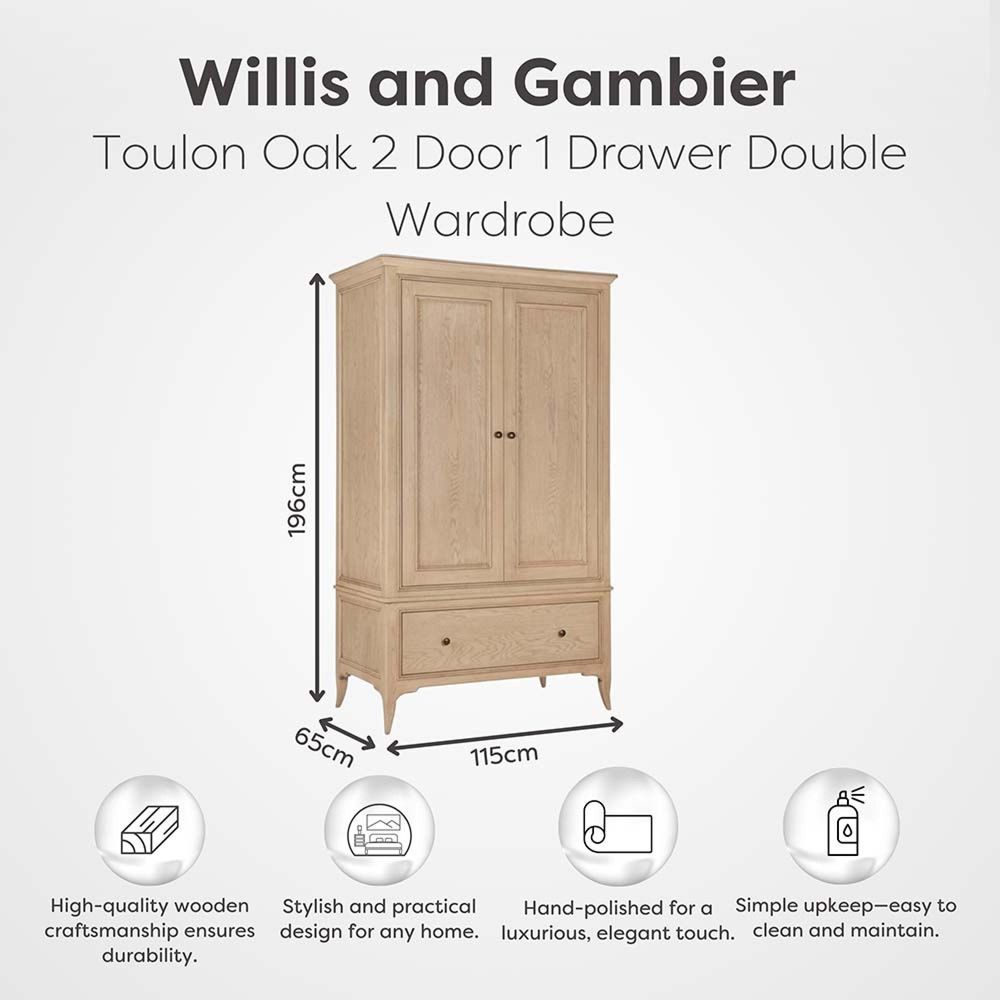 The Willis and Gambier Toulon Oak Wardrobe is more than just a storage solution—it’s a piece of craftsmanship designed for everyday use and special occasions alike. Its antique-inspired design and solid wood construction make it a lasting investment for your home, combining practicality with elegance. Whether you’re updating a classic bedroom suite or introducing a statement piece to your space, this wardrobe reflects enduring quality and style.