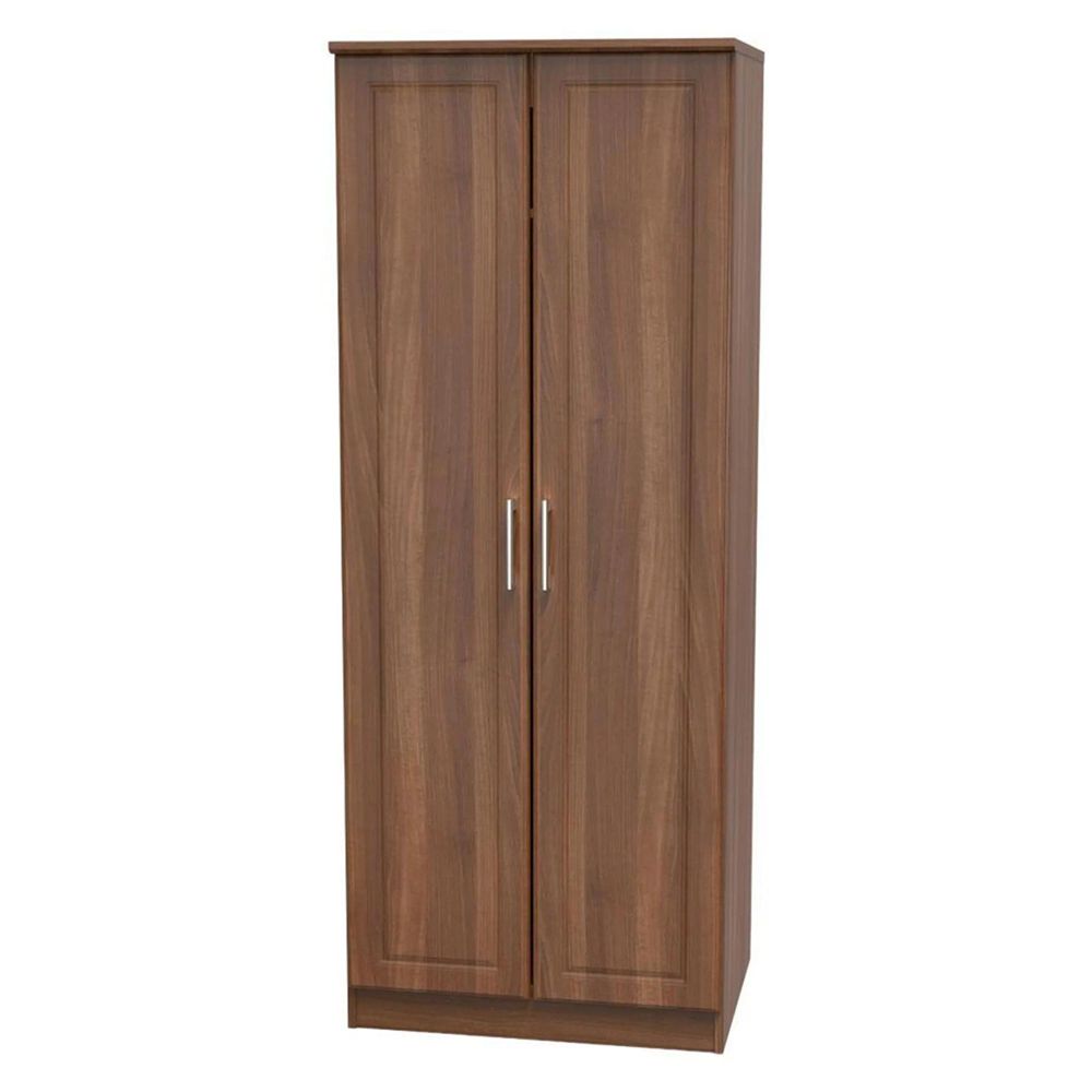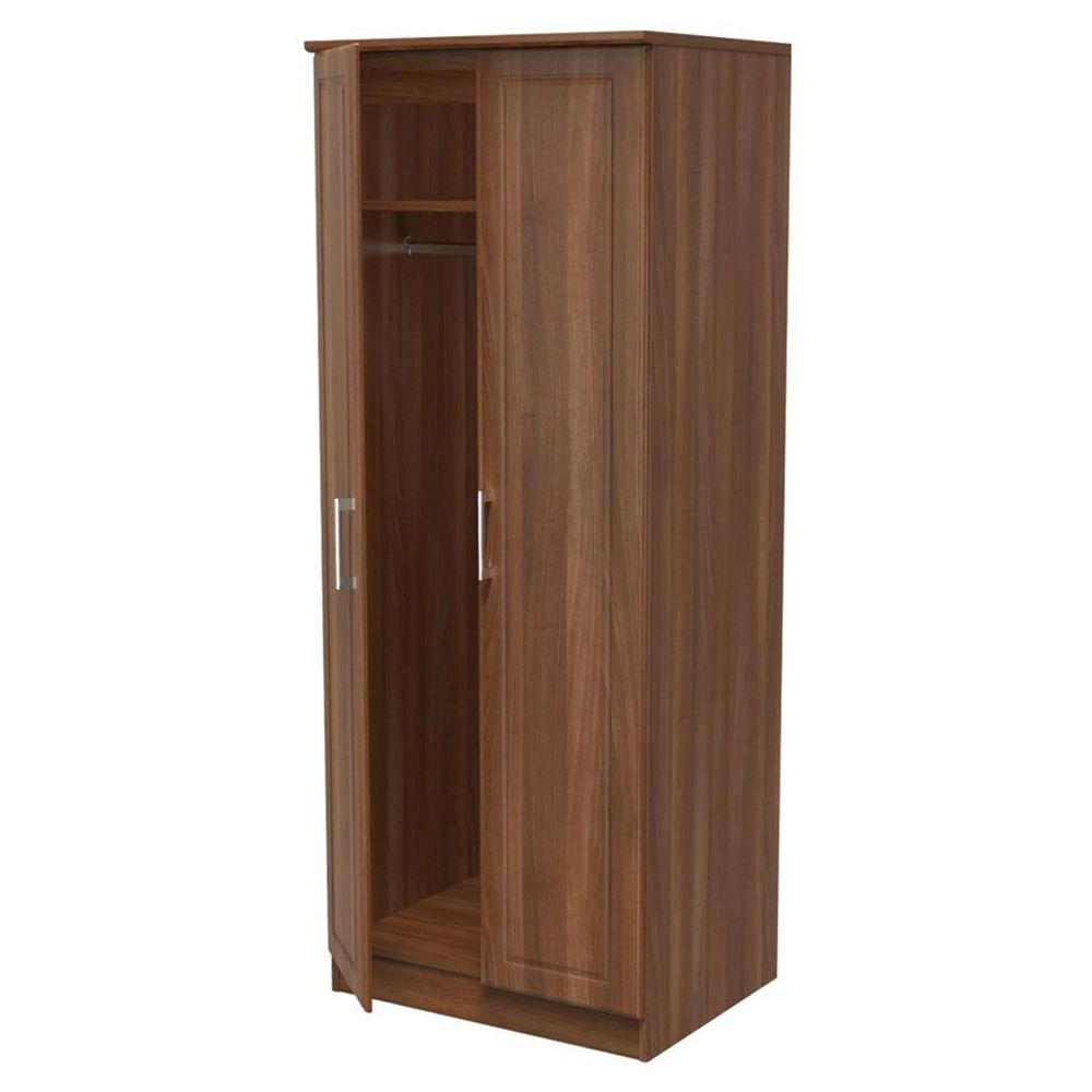 Clearance - Gina Walnut Effect 2 Door Plain Tall Wardrobe - FSS16432