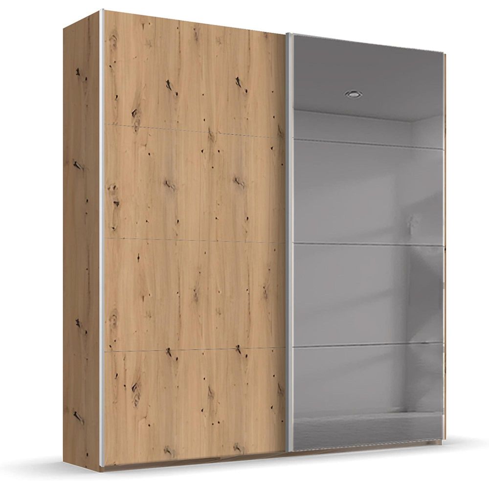 Rauch Beluga Extra 181cm 2 Door Sliding Wardrobe with Grey Mirror - Artisan Oak