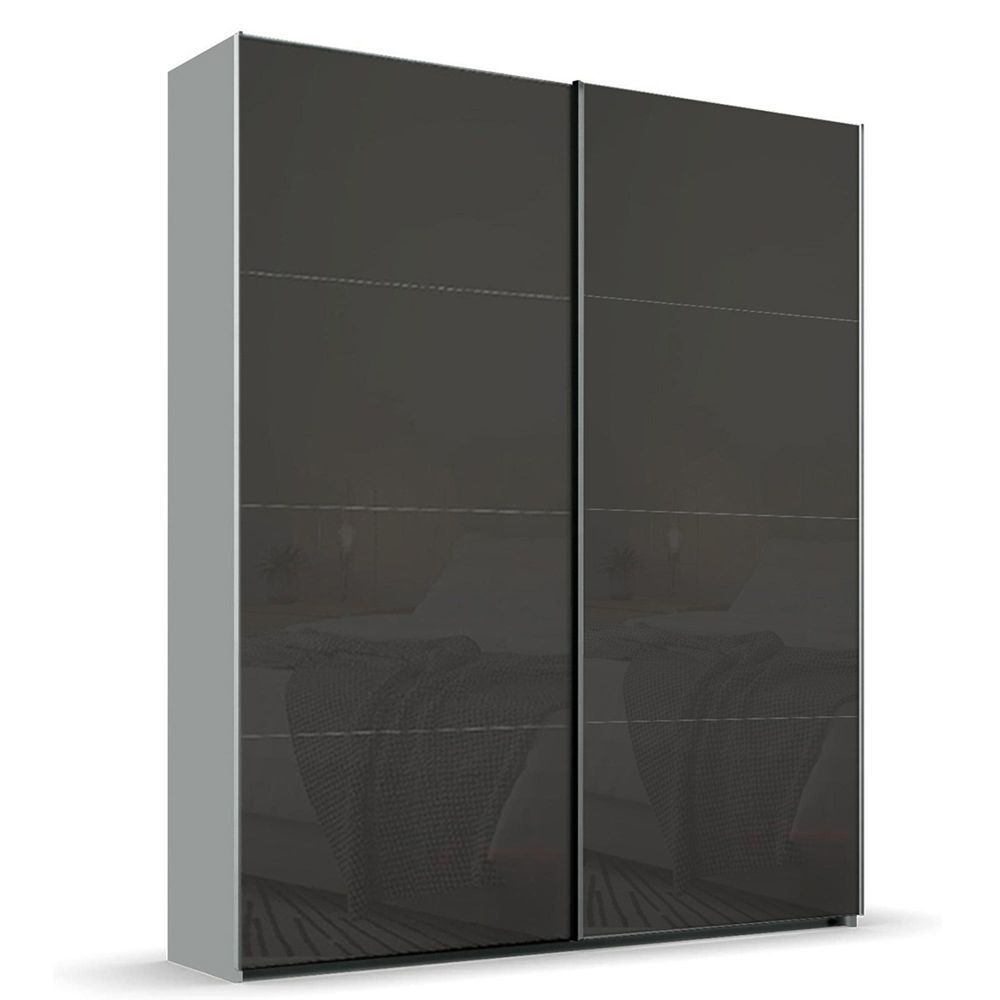 Rauch Beluga Extra 137cm 2 Door Sliding Wardrobe - Silk Grey and Basalt Glass