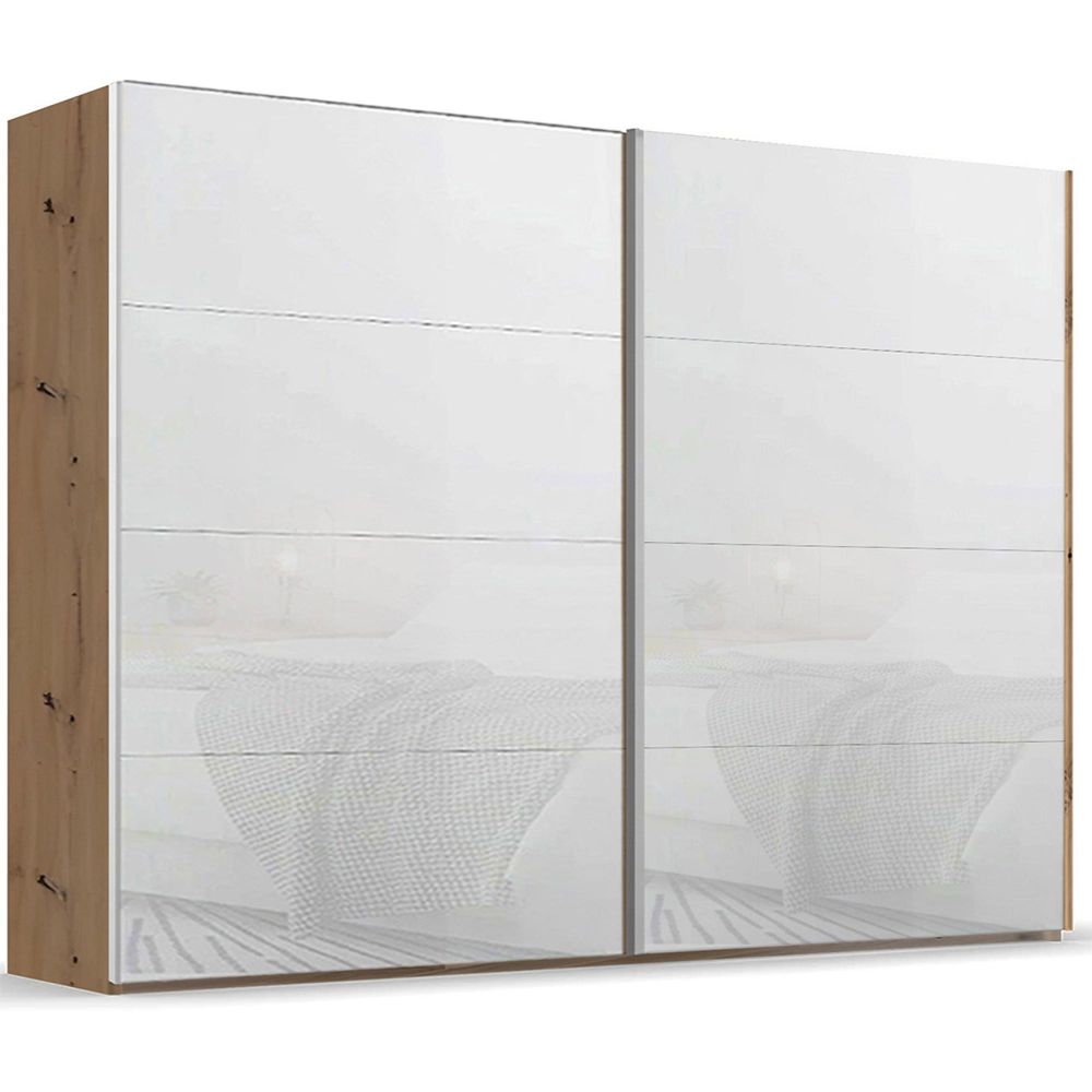 Rauch Beluga Extra 271cm 2 Door Sliding Wardrobe - Artisan Oak and White Glass