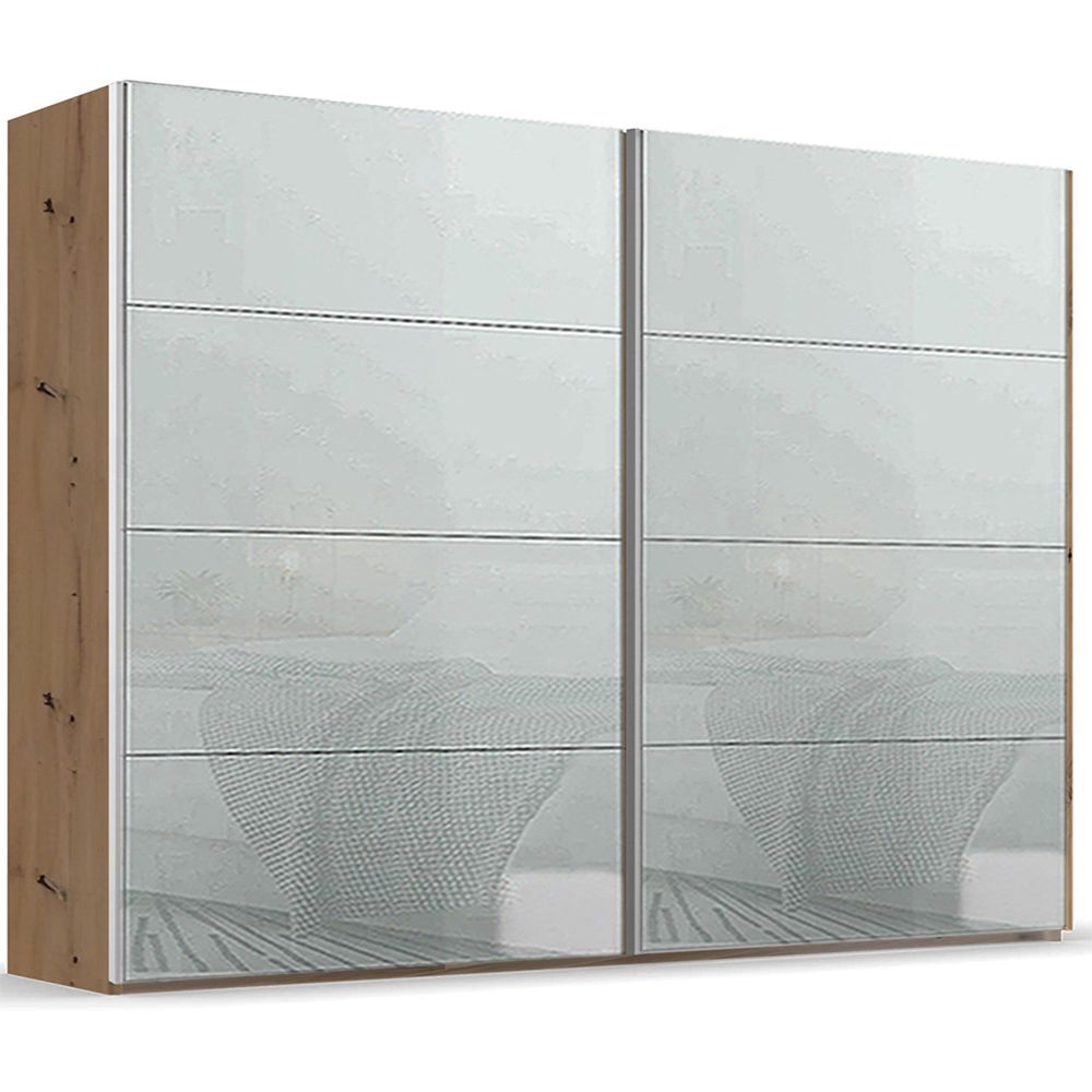Rauch Beluga Extra 271cm 2 Door Sliding Wardrobe - Artisan Oak and Silk Grey Glass