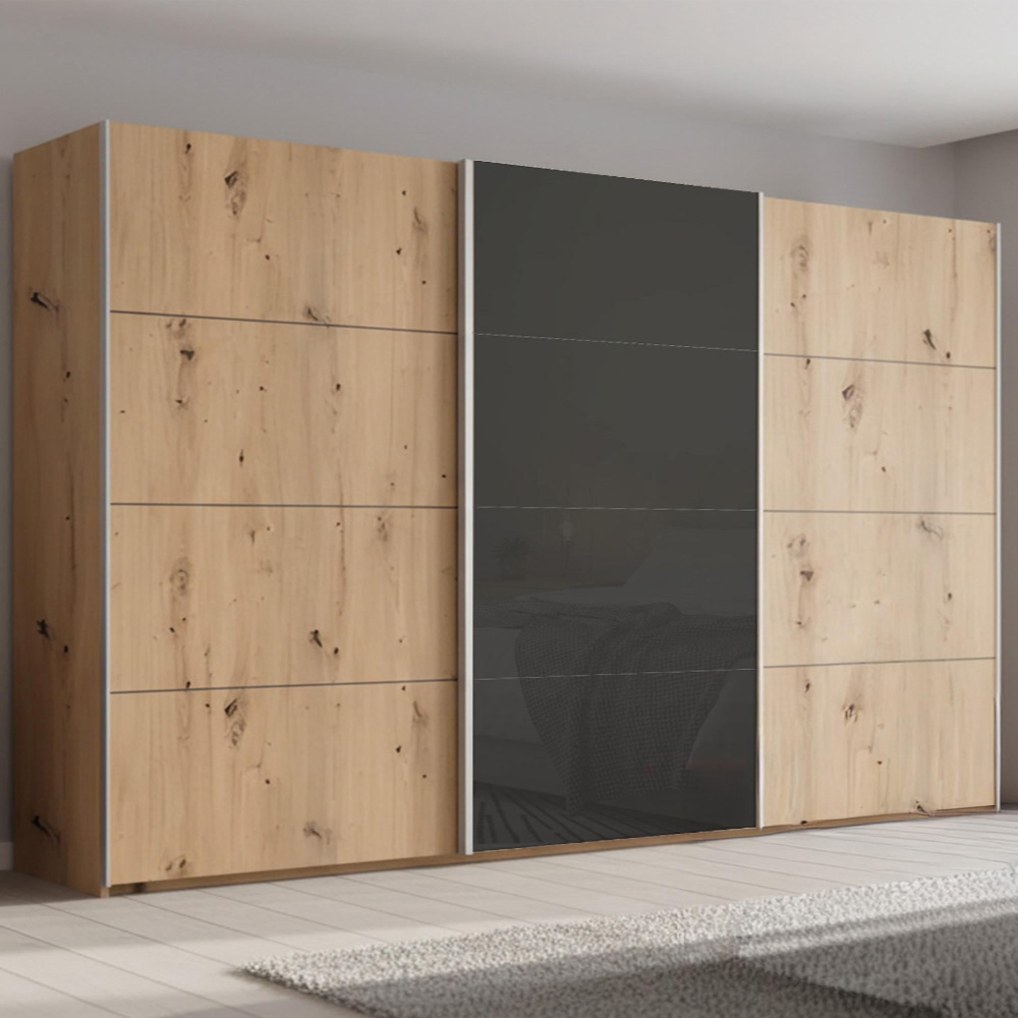 Beluga Extra Sliding Wardrobe - 406cm - 3 Door - Artisan Oak & Basalt Glass Front