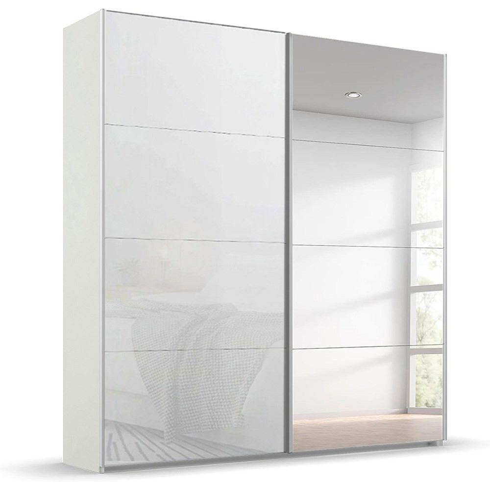 Beluga Extra Sliding Wardrobe - 181cm - 2 Door - Mirror - Alpine White & White Glass