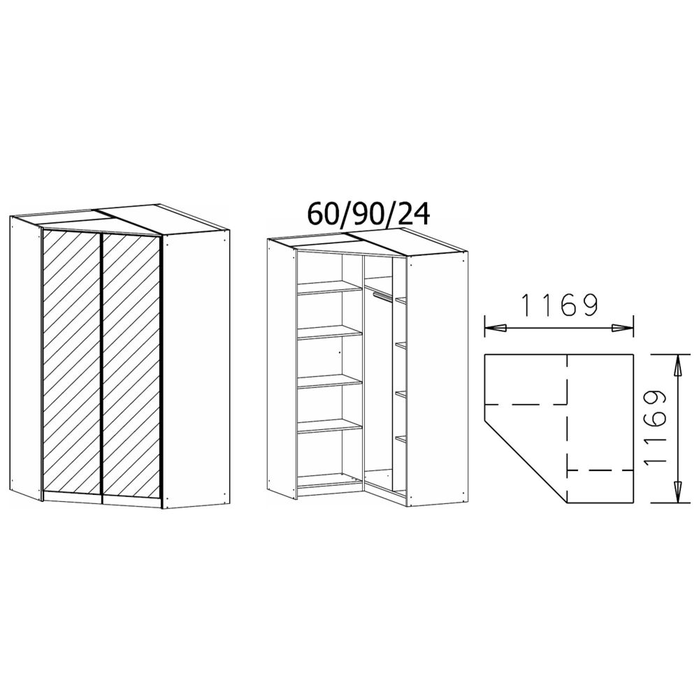 Rauch Celle Super 117cm 2 Door Corner Wardrobe with Mirror - Metallic Dark Grey and Alpine White